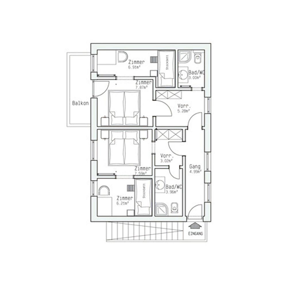 + 3 Einheiten für jeweils max. 4 Personen - je 1 DZ mit Trennwand und kleinerem Raum mit einem Etagenbett (normale Größe 90 x 200)