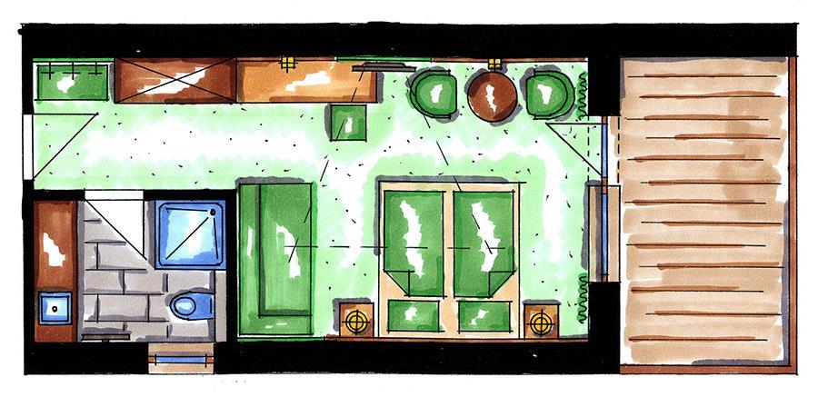 In den Komfortzimmern mit Balkon und herrlichem Ausblick auf die umliegende Bergwelt, finden Sie folgende Ausstattung:
