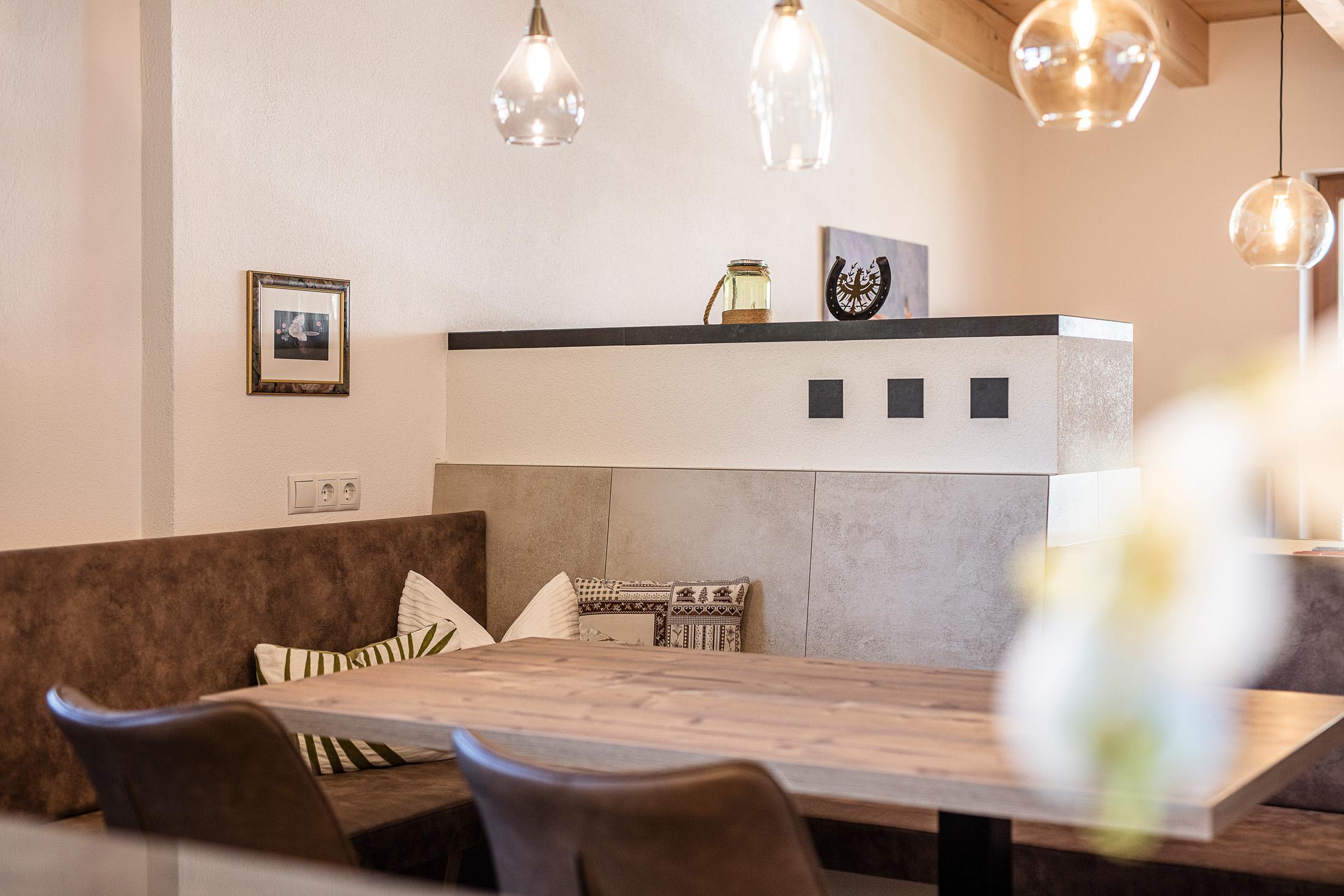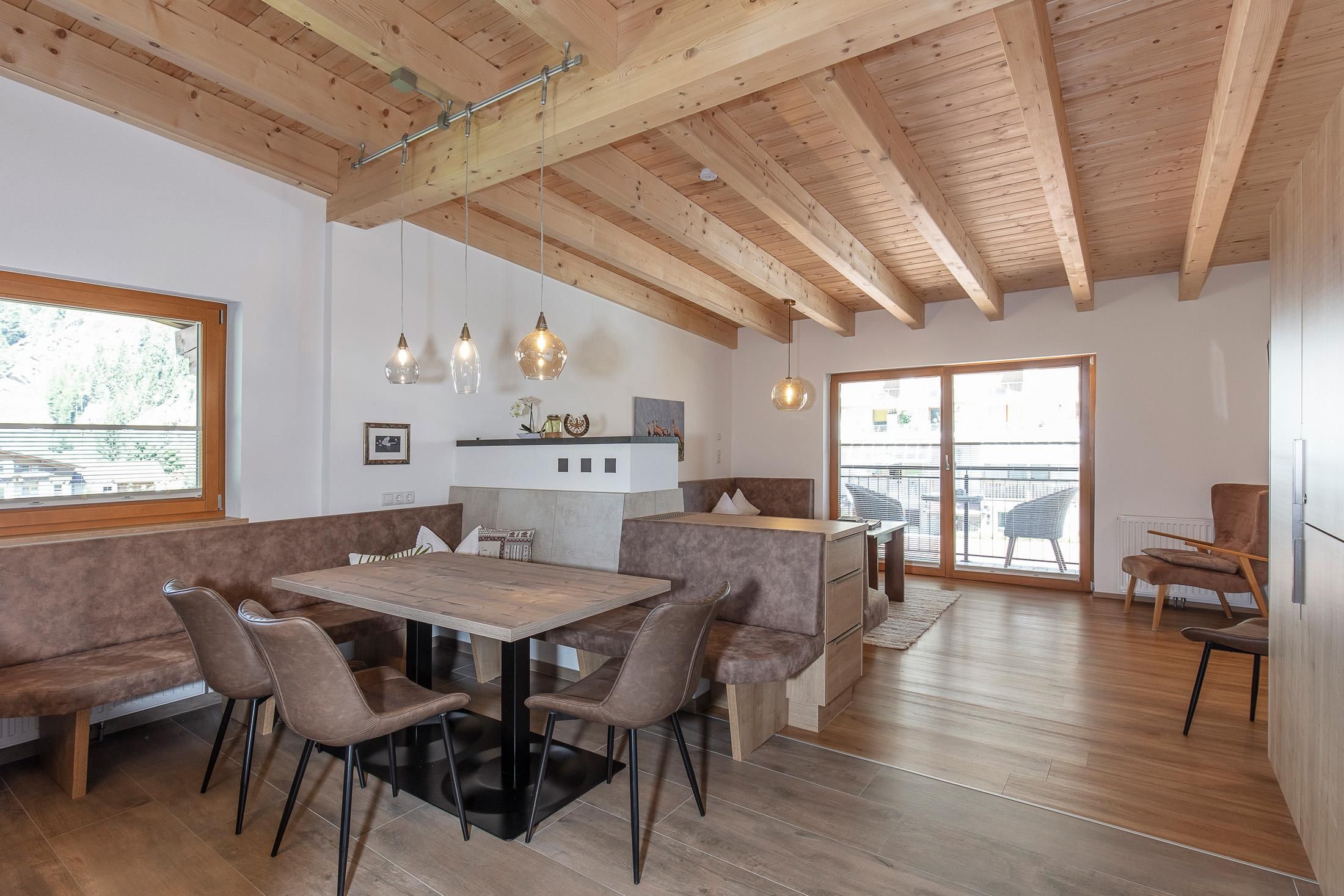 Das Appartement (ca. 100 m²) besteht aus 2 Doppelzimmern und 2 Einzelzimmern mit Flat-TV. Alle Schlafzimmer verfügen über ein eigenes Badezimmer mit Dusche/WC, Haarföhn. Großzügige, vollausgestattete Wohnküche mit gemütlicher Sitzecke. Zu den Highlights vom Appartement zählt der gemütliche Kachelofen mit Liegefläche und der offene Sichtdachstuhl. Genießen Sie auf dem möblierten Balkon den Blick auf die herrliche Ötztaler Bergwelt.
