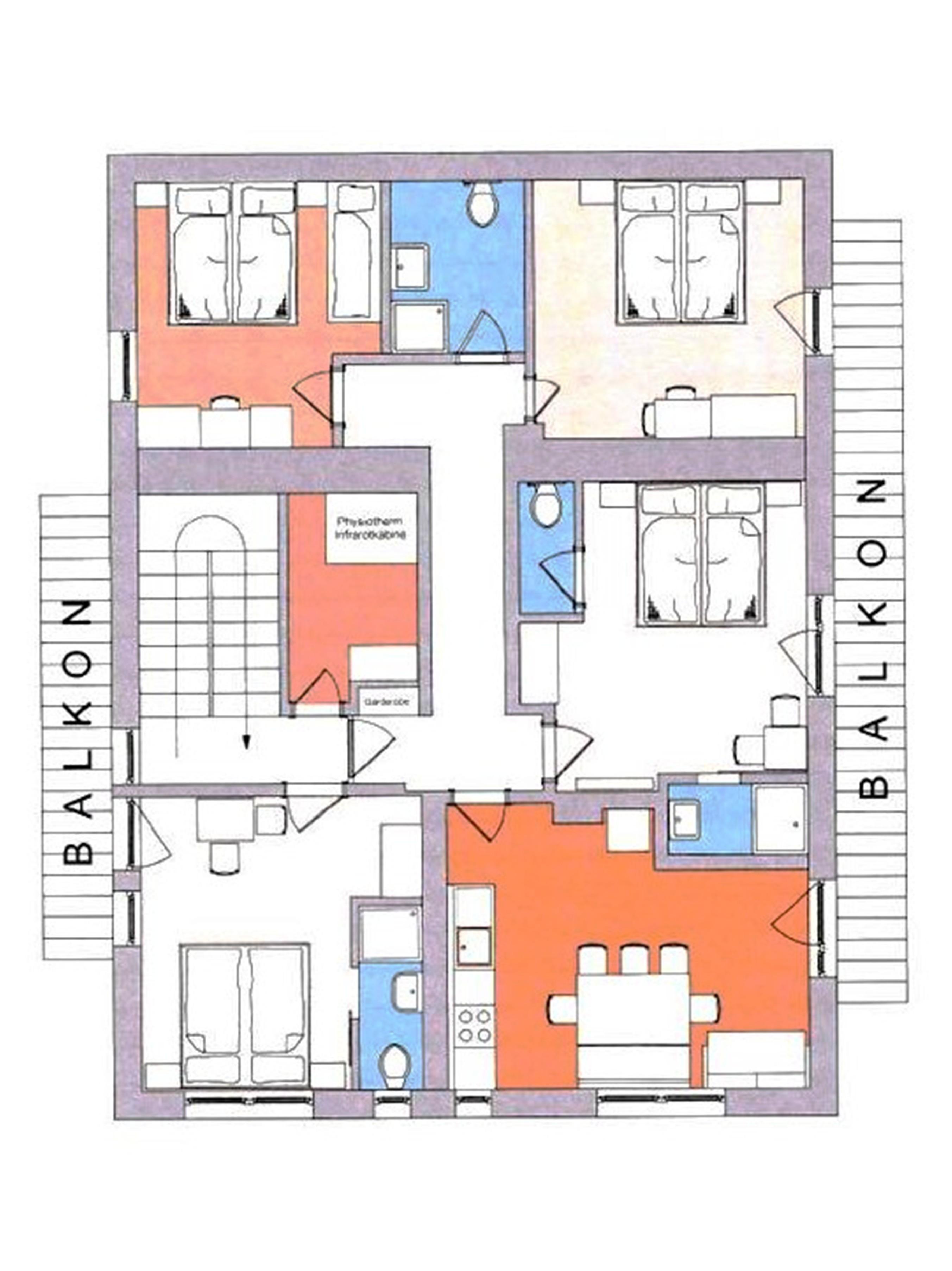 Mit 9 Betten ist unser Haus ideal für Gruppen oder Familien. Entspannen Sie nach einem aufregenden Tag in der Infrarotkabine oder verbringen Sie gesellige Abende am naturnahen Grillplatz.