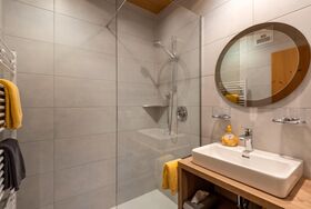 Waschmaschine, Trockner und Abstellraum für Schi, Sportgeräte und -schuhe stehen zur Verfügung.