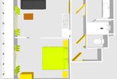 Studio mit Balkon und kleinen Garten. Separates Schlafzimmer. Badezimmer mit Dusche und eine separate Toilette. Kitchenette.