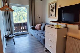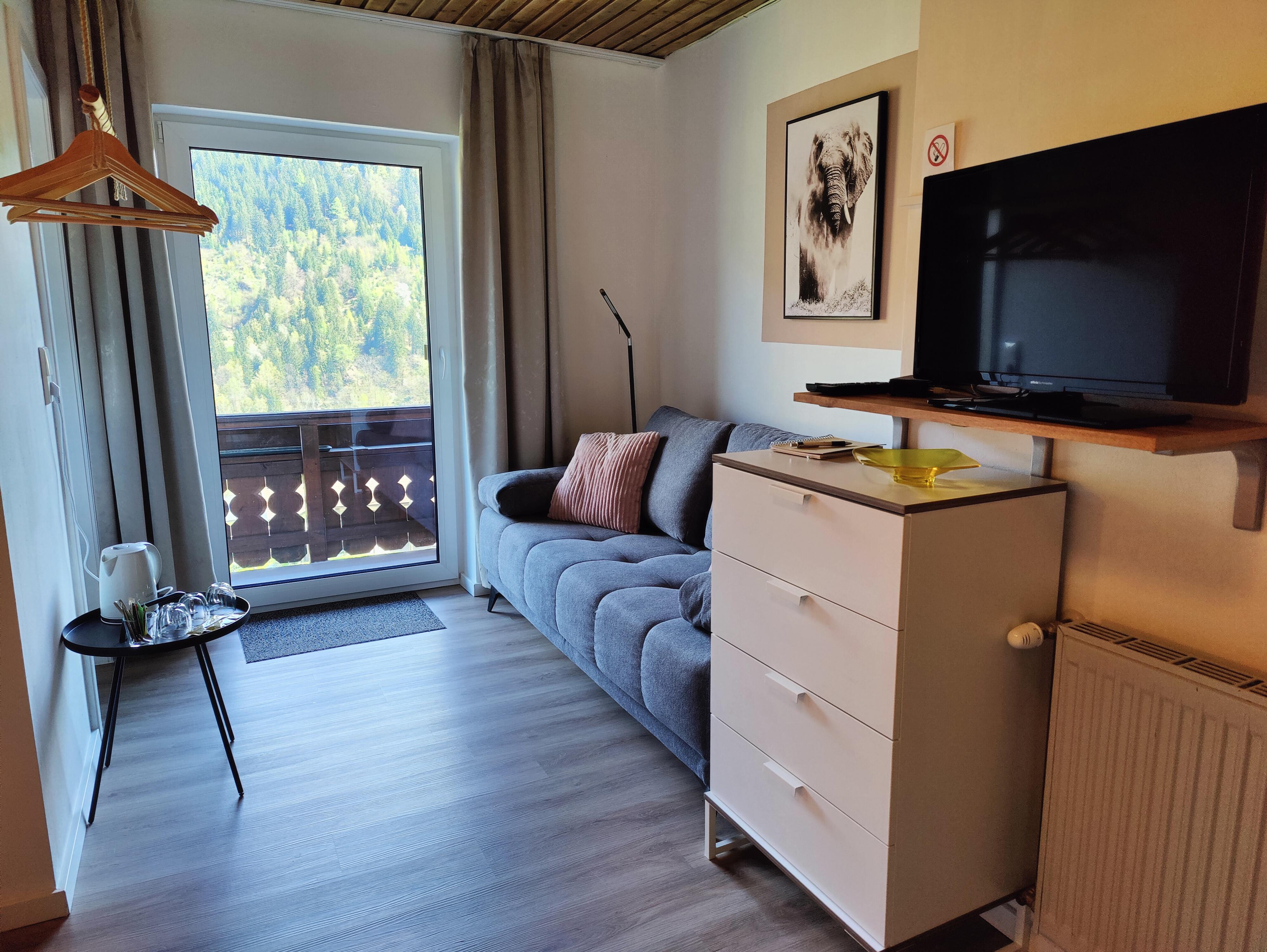 Dieses Zimmer ist für eine kleine Familie mit drei Personen geeignet. Es hat ein geräumiges Doppelbett und ein bequemes Schlafsofa. Das Zimmer verfügt über einen eigenen Balkon, Satellitenfernsehen, WiFi und ein Schließfach. Im Badezimmer gibt es Dusche und WC, Föhn und einen Kosmetikspiegel.