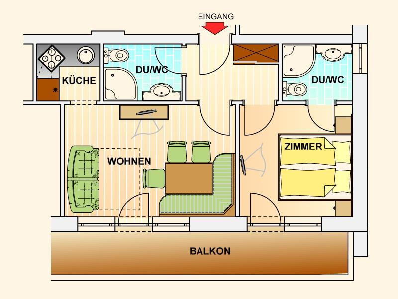 • 1 Schlafzimmer mit Flat-TV, 2 Badezimmer mit Regendusche/WC, Haartrockner