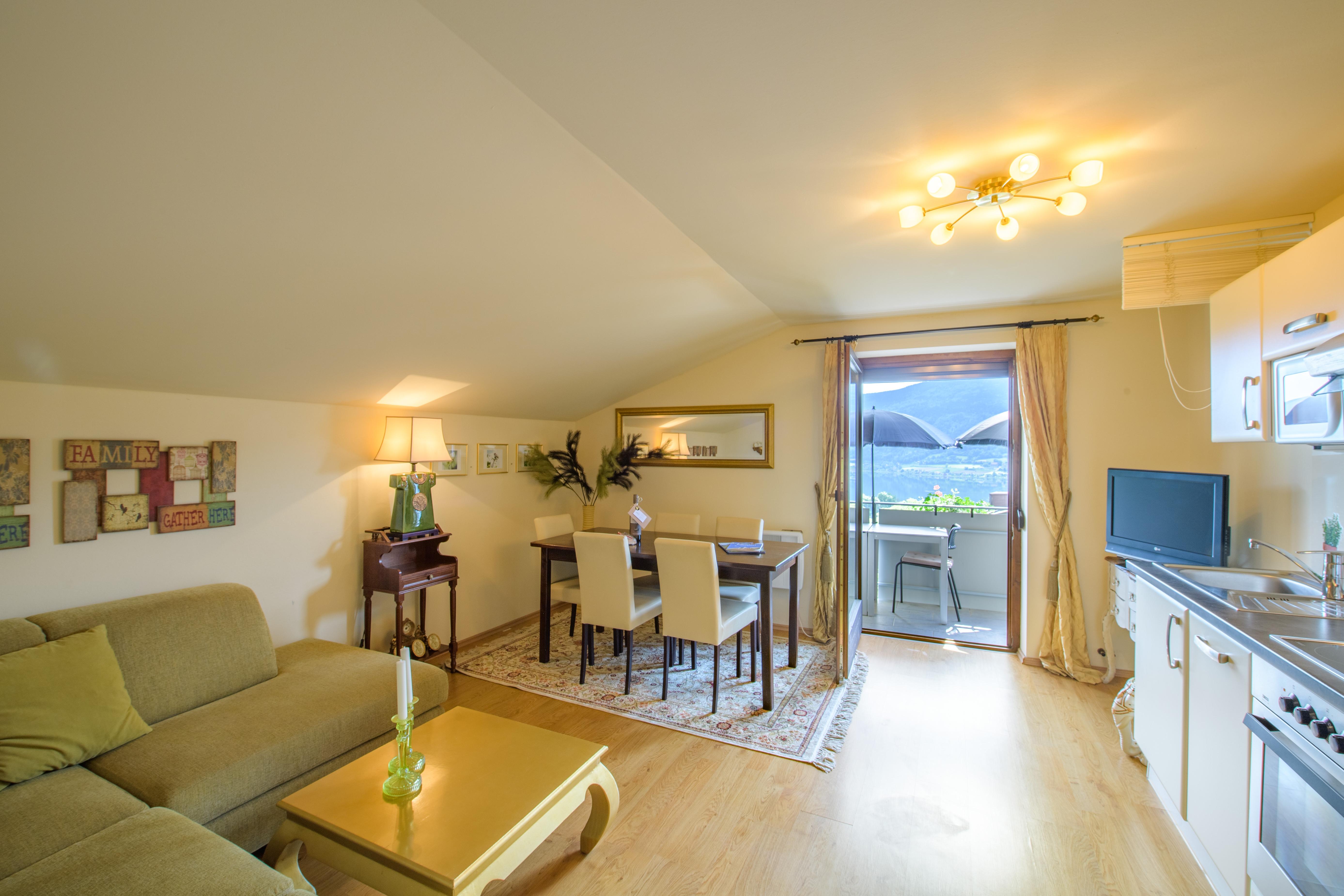 Diese geräumige Wohnung von ca. 60 m2 hat einen (kleineres) Balkon auf der Sonnenseite mit einem wunderschönen Blick über die Berge und den Ossiacher See. Die Wohnung verfügt über 1 Badezimmer, 2 Schlafzimmer und eine geräumige Wohnküche, die komplett ausgestattet ist. Es gibt auch eine schöne Sitzecke mit Fernseher. Die Schlafzimmern haben neue Boxspringbetten und Kleiderschrank.