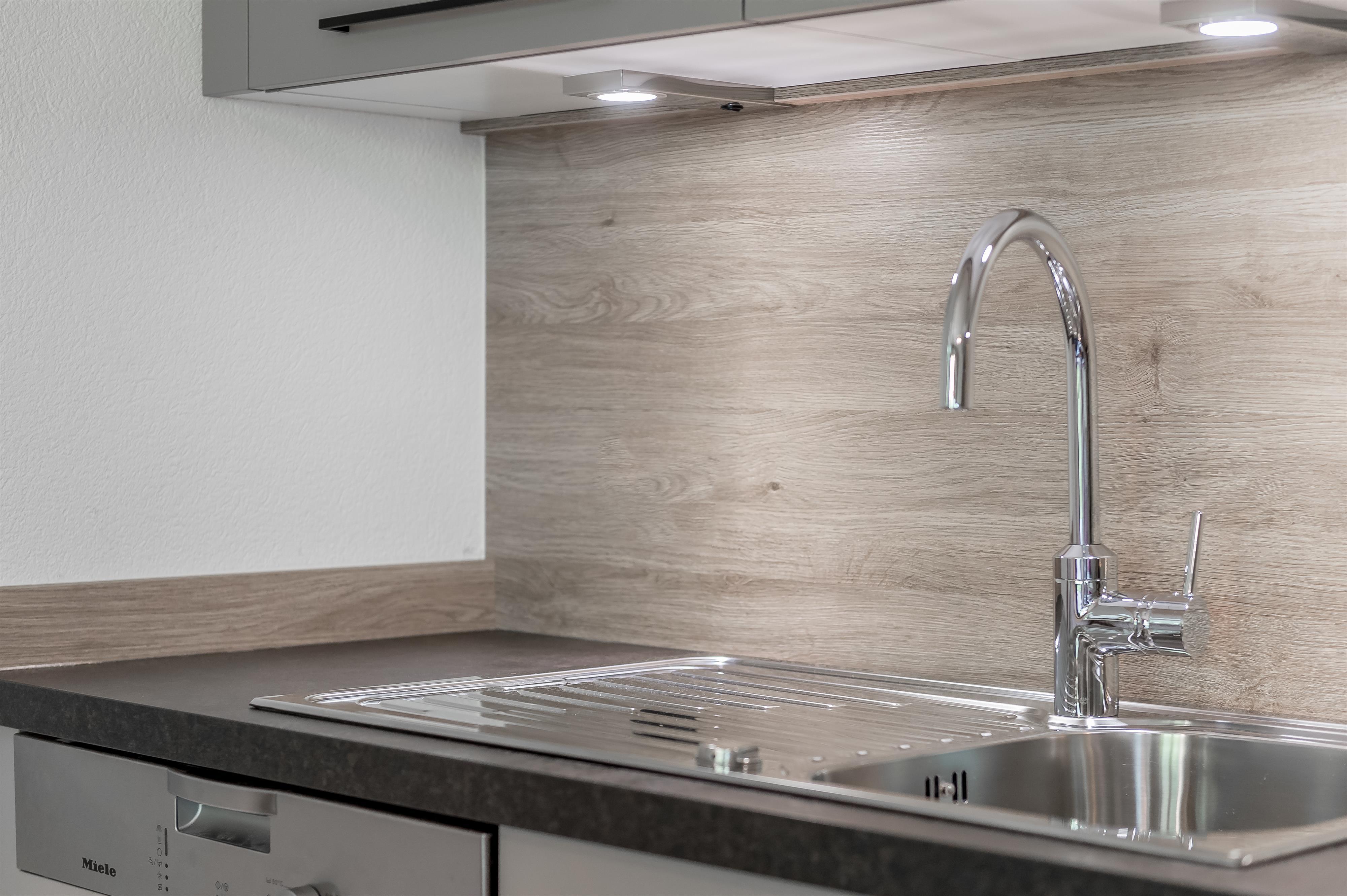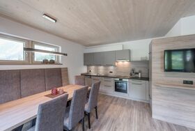 • Vollausgestattete Wohnküche mit Mikrowelle, Wasserkocher, Nespresso Kapsel-Kaffeemaschine, Spülmaschine, Kühlrschrank mit Gefrierfach, Ceranfeld mit 4 Kochfeldern, Kochgeschirr, Speisegeschirr und Besteck sowie gemütlichem Essbereich