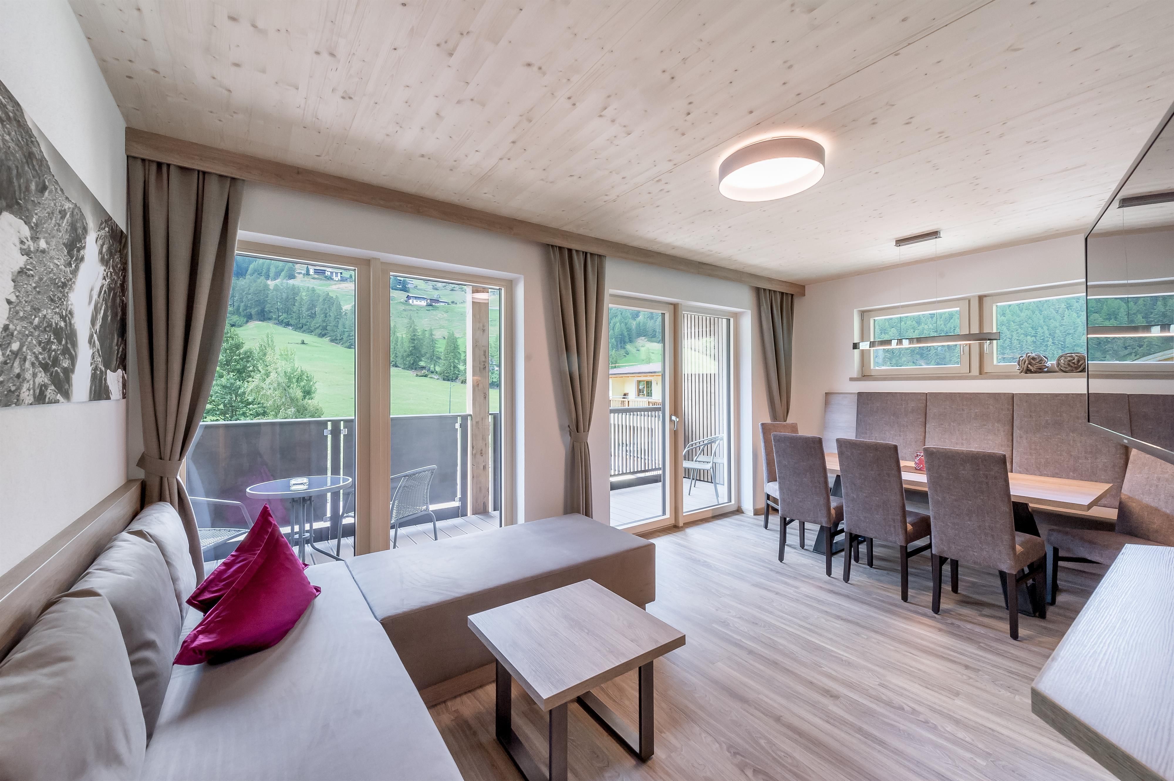 Im Panorama Deluxe Apart mit 70 m² im 3. Obergeschoss, trifft Design auf heimische Holzarten und erlesene Materialien, stets inspiriert von der umliegenden Natur und einem Ausblick, der einen erstaunen lässt.