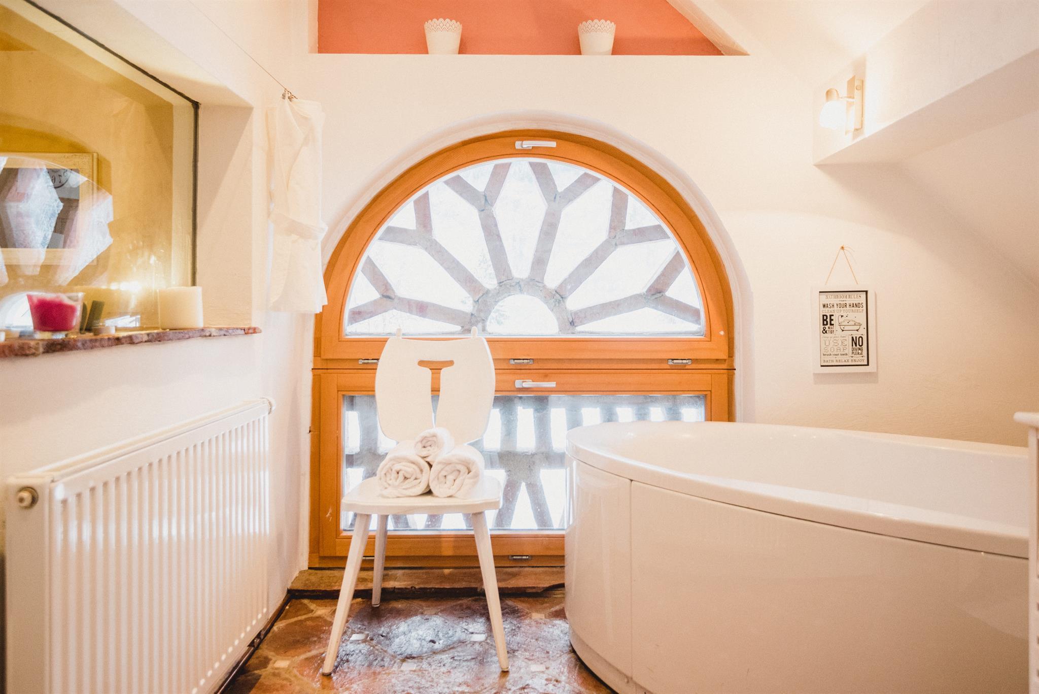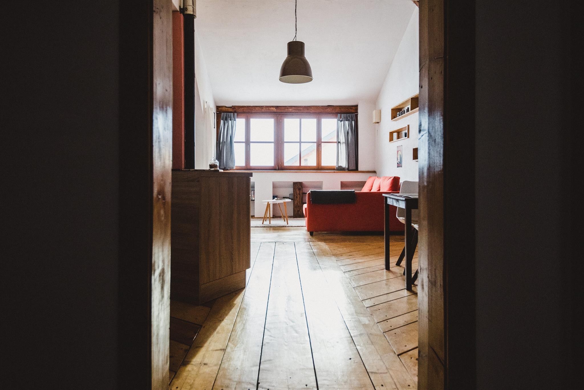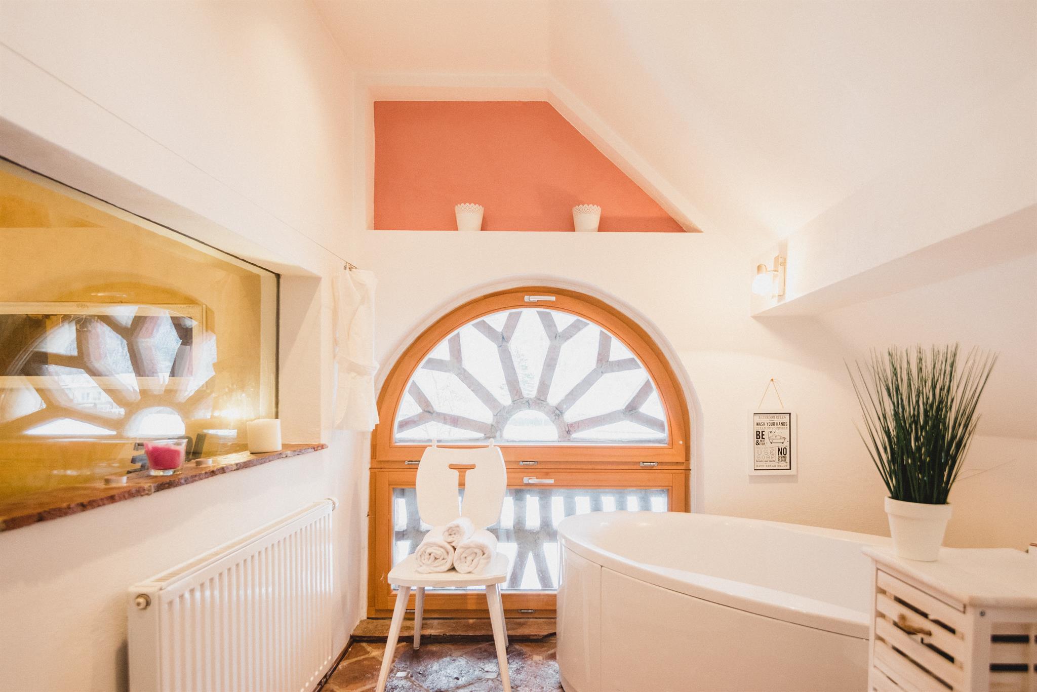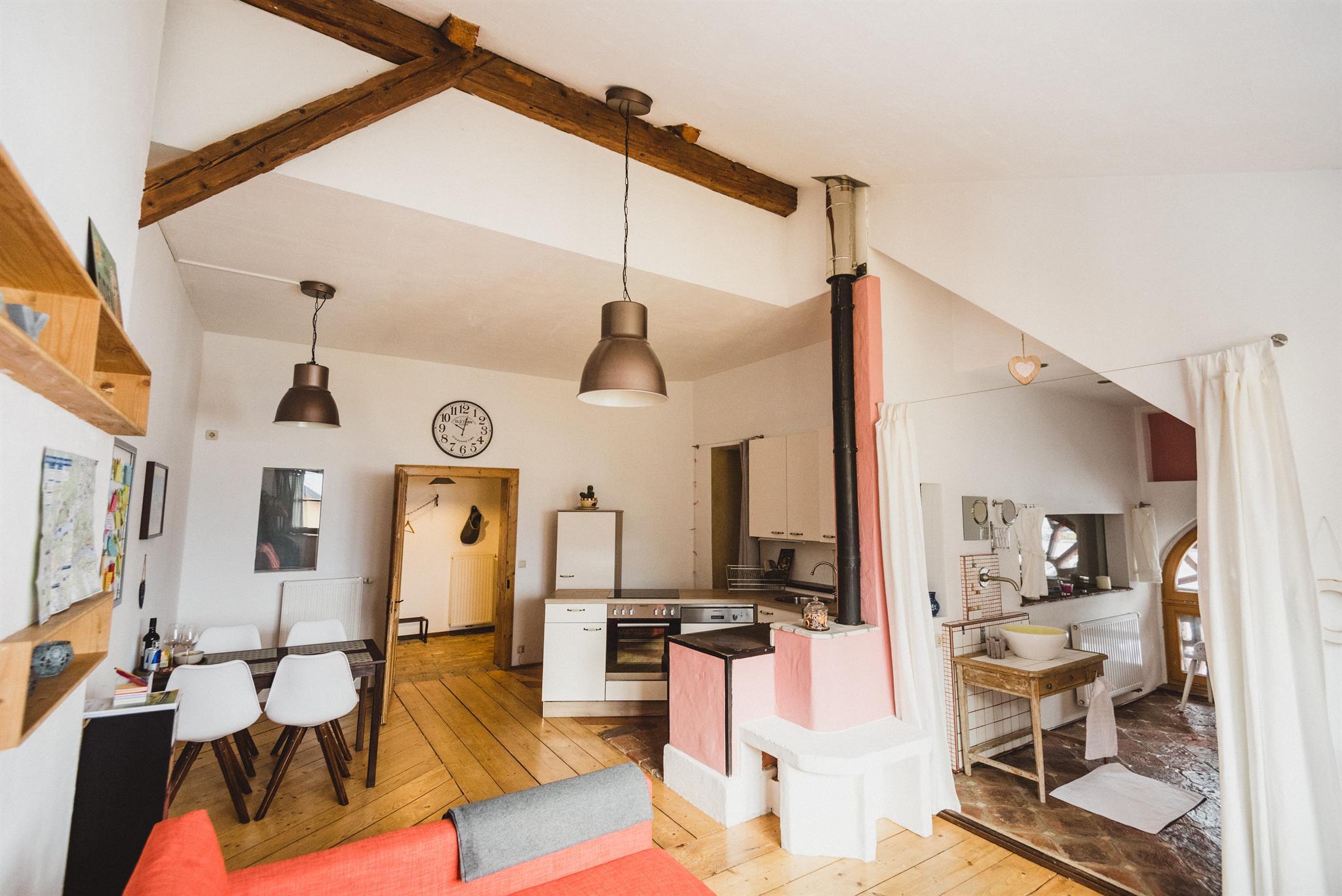 Erlebe und genieße die Atmosphere in einem 100 Jahre alten Haus! Fenster, die aus Ziegeln gemauert wurden, der hohe Innenbereich und die Holzstiegen, die dich in das Apartment führen, erzeugen ein gemütliches Ambiente.