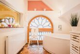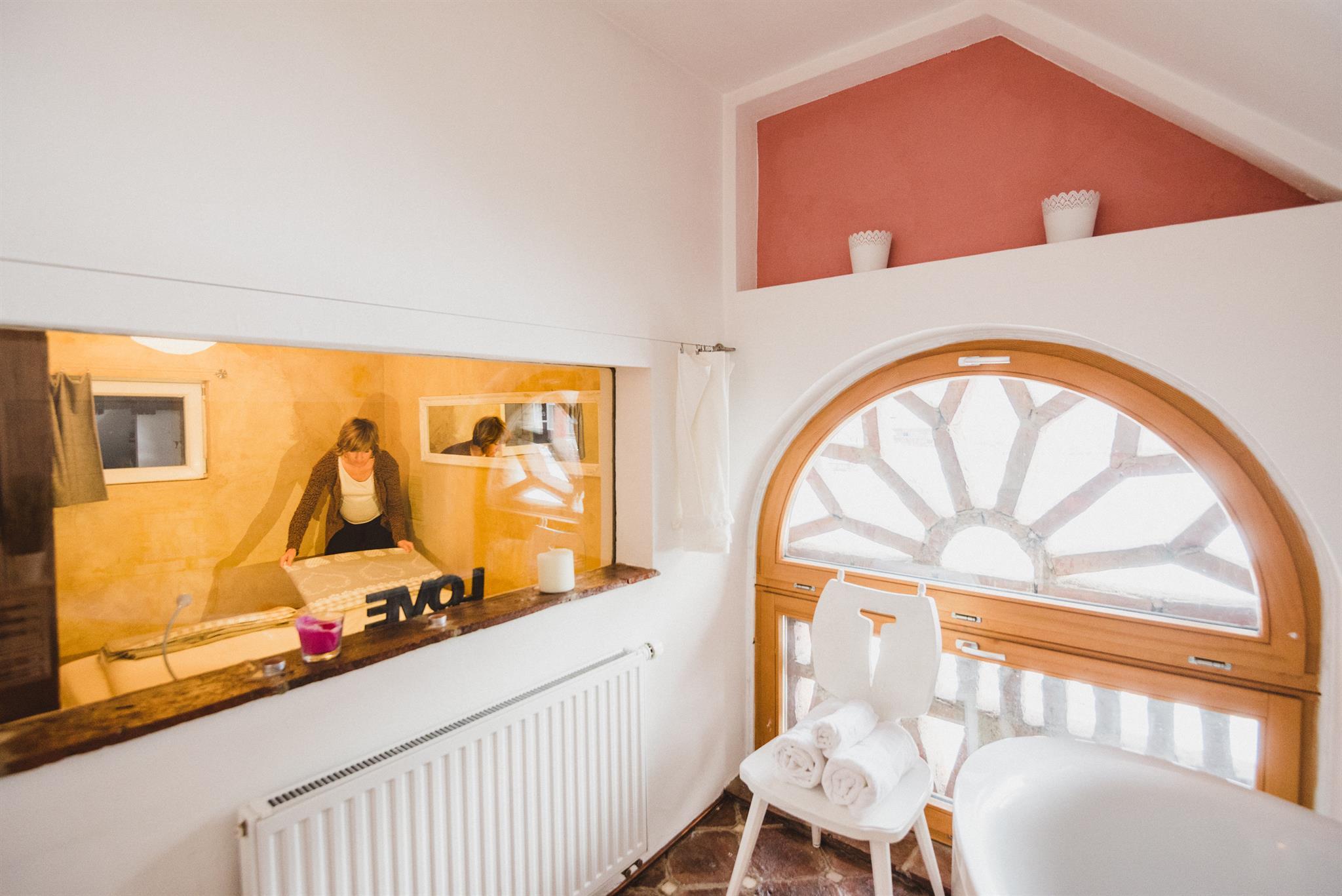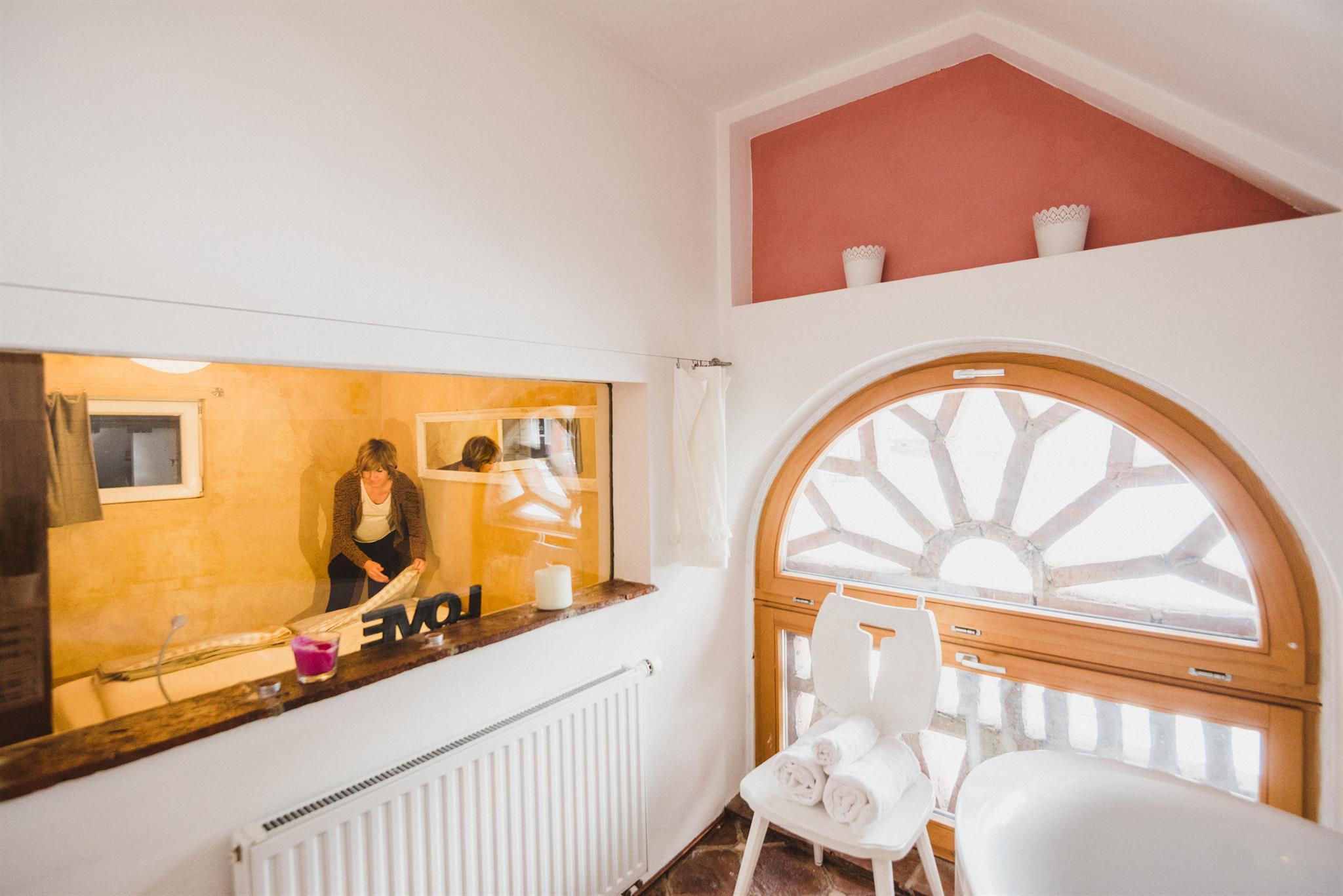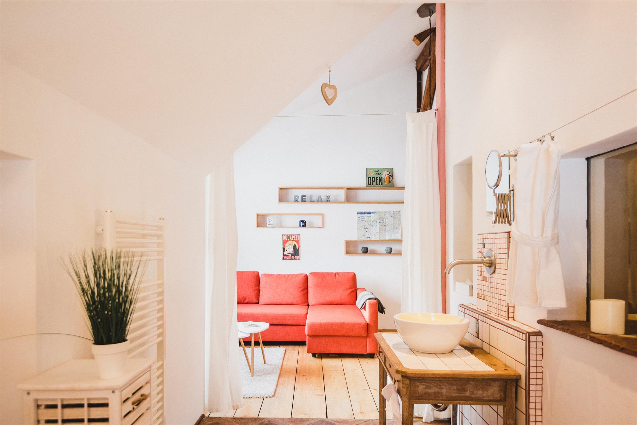 Erlebe und genieße die Atmosphere in einem 100 Jahre alten Haus! Fenster, die aus Ziegeln gemauert wurden, der hohe Innenbereich und die Holzstiegen, die dich in das Apartment führen, erzeugen ein gemütliches Ambiente.