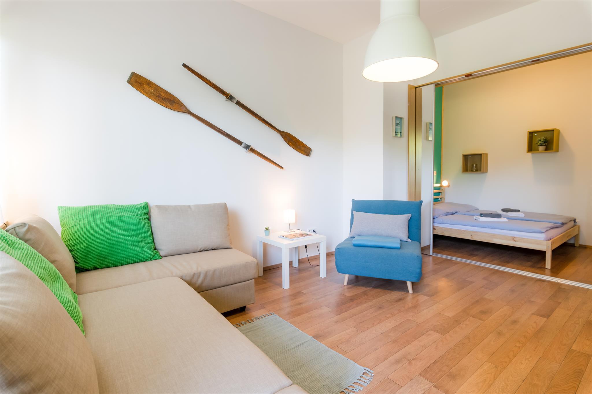 Wir haben versucht, eine angenehme Umgebung auf diesen 50 m2 zu gestalten: Der Wohn- und Essbereich mit der gut ausgestatteten Küche, das einzigartige Badezimmer und das romantische Schlafzimmer verschaffen ein besonderes, ruhiges Milieu zu deiner Erholung.