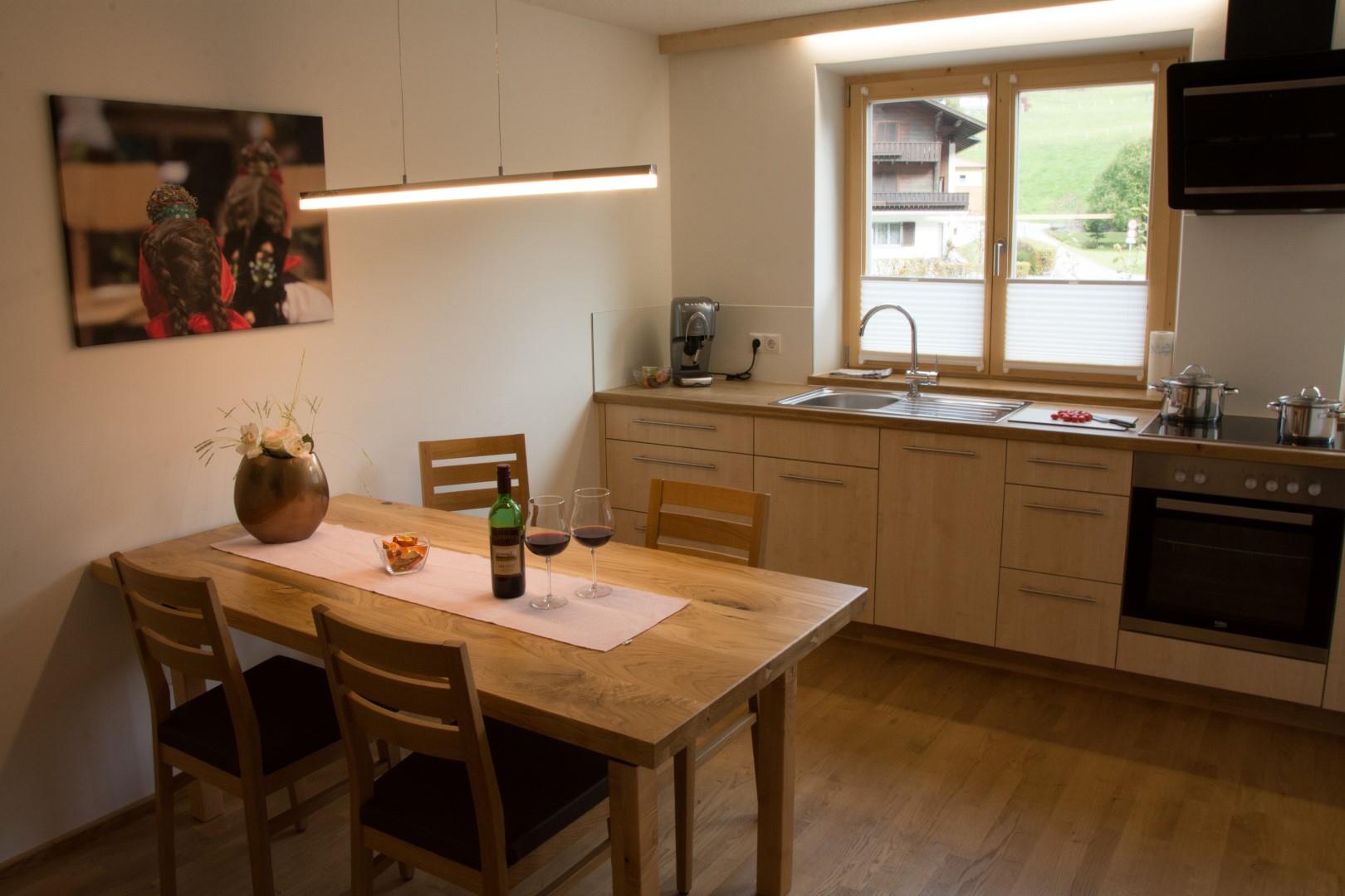 Unsere Ferienwohnung auf 65 m² besteht aus 2 Schlafzimmern, separatem WC, Wohnküche mit Sat-TV und W-Lan, einem Dampfbackofen, Geschirrspüler, Kapselkaffeemaschine, Wasserkocher sowie einem Toaster. Ein Haarfön, allergikerfreundl.Bettwäsche, Geschirrtücher, Hand- und Duschtücher sind ebenfalls vorhanden. Unsere Fußbodenheizung sorgt für wohlige Wärme. Die Terrasse im Grünen lädt zum Verweilen ein