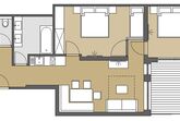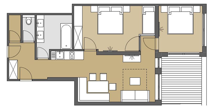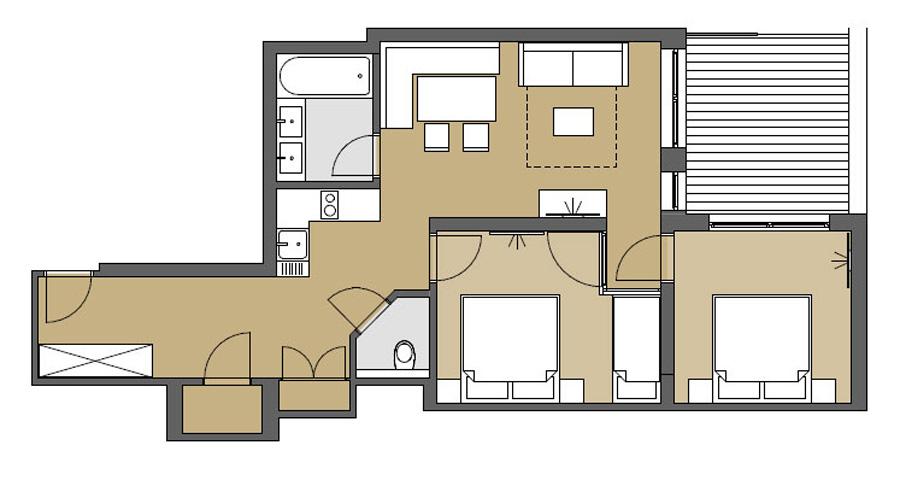 3-Zimmer-Appartement mit 65 m² für 4-5 Personen mit Balkon.