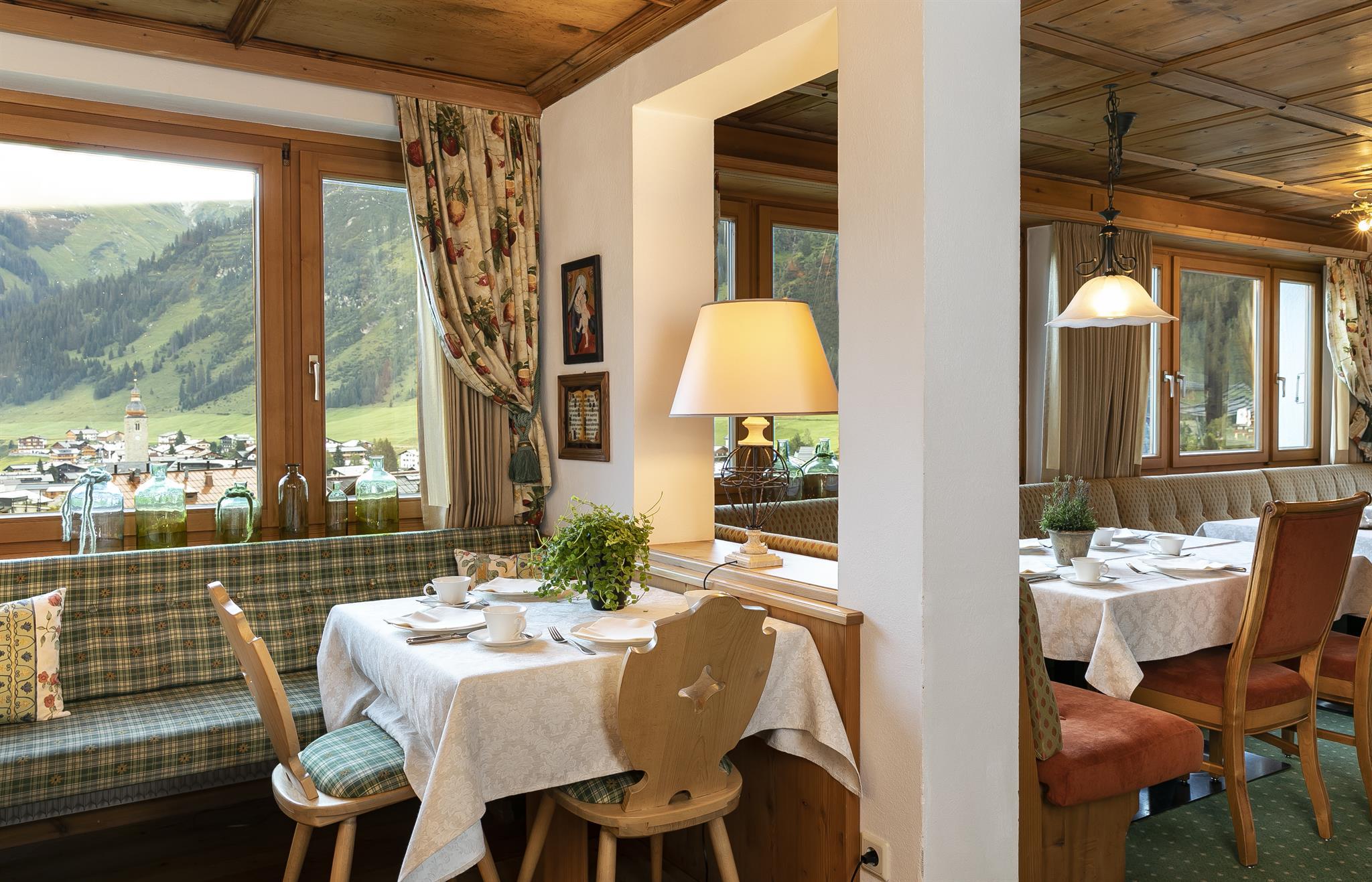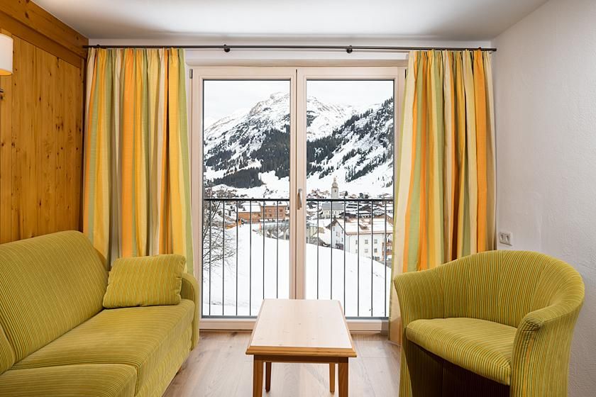 Genießen Sie den einmaligen Blick auf das Dorf und die Berge. In nur 5 Geh-Minuten erreichen Sie das Zentrum von Lech