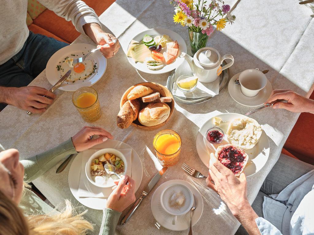 Unsere hellen Zimmer, Suiten und Appartements, größtenteils mit Balkon oder französischem Balkon, sind mit viel Holz von unseren heimischen Tischlern ausgestattet. Wunderschöne Wollstoffe und klassisch gehaltene, helle Bäder laden zum Wohlfühlen ein.