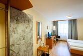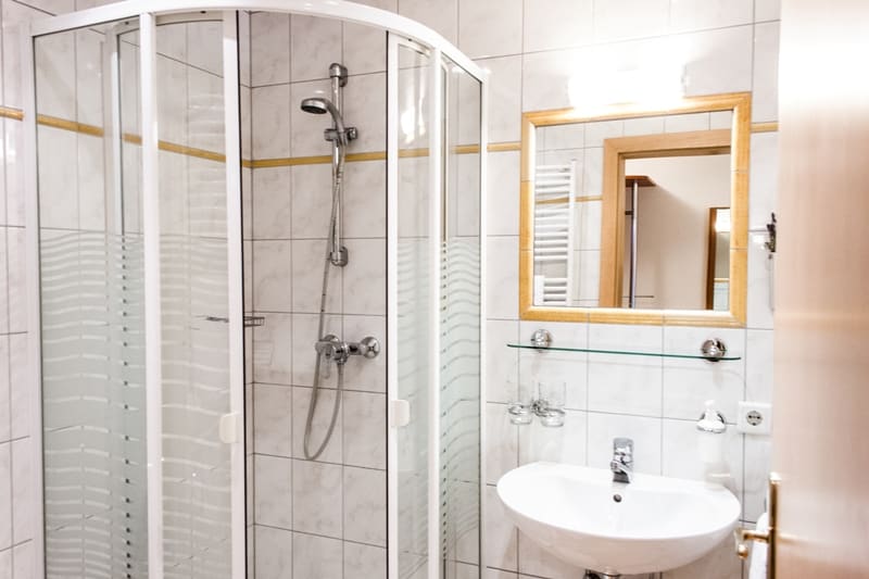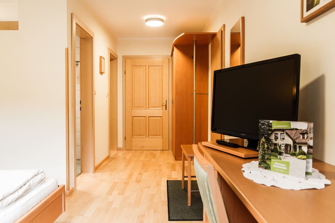 Die hochwertige und komfortable Ausstattung ist genau das richtige für den verwöhnten Gast. Dazu gehören Flat-TV und WLAN ebenso wie das vom WC räumlich getrennte Badezimmer.