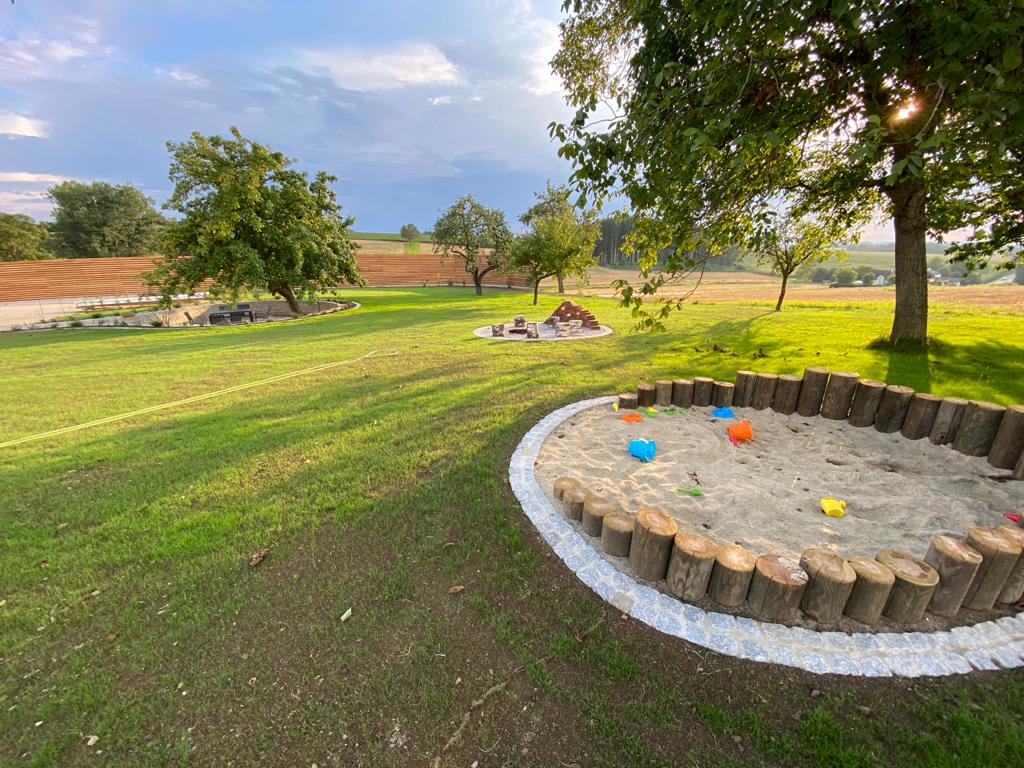 Vor der Haustüre befindet sich ein großer Garten mit Sitzgelegenheiten, Spielflächen für Kinder und einer Lagerfeuerstelle. Bedient euch gerne in unserem Naschgarten oder macht euch auf zu einer kleinen Erkundungstour in den angrenzenden Wald.