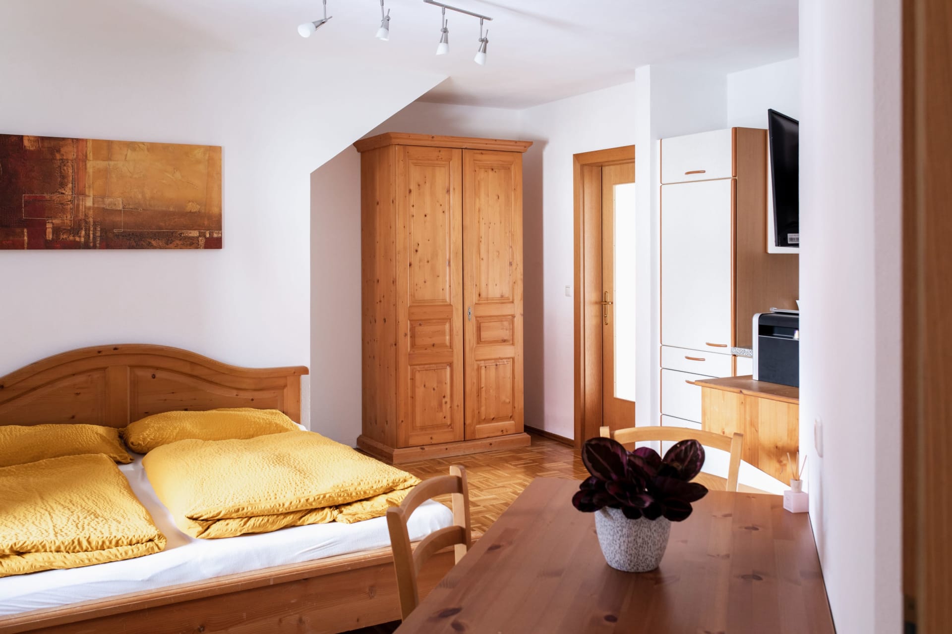 Die Doppelzimmer sind mit einer kleinen Küche und einem Badezimmer ausgestattet. Es kann ein Frühstückskorb gegen den Aufpreis von 15€/Person zugebucht werden.