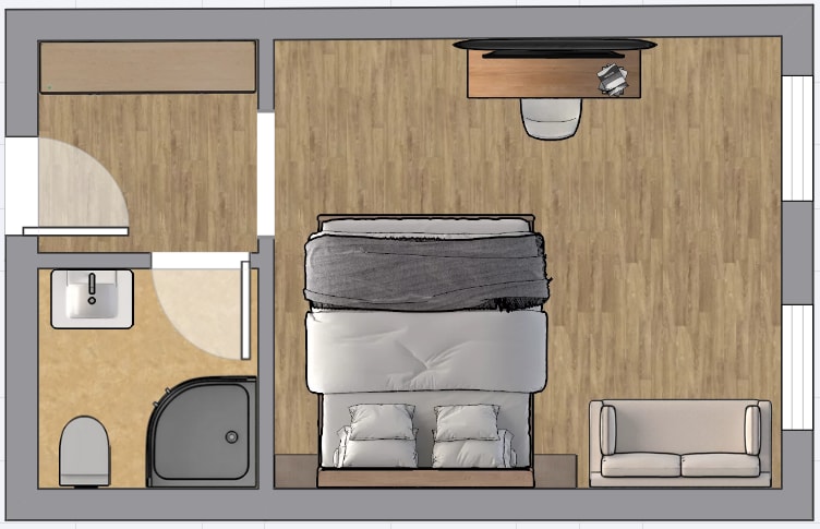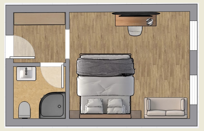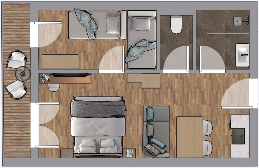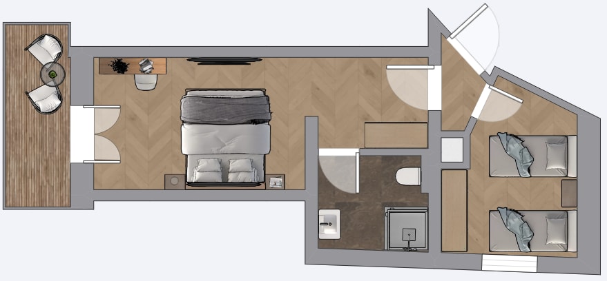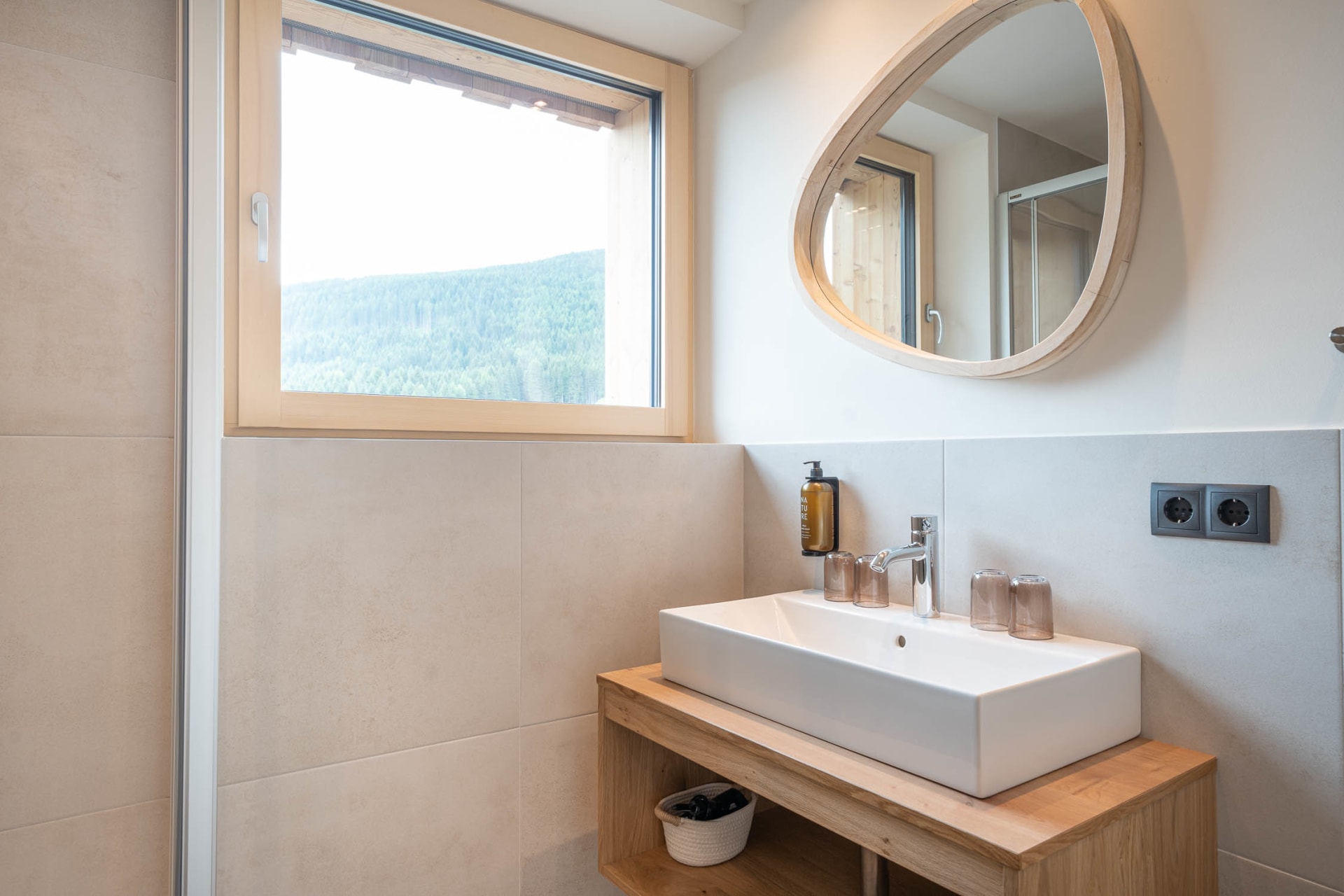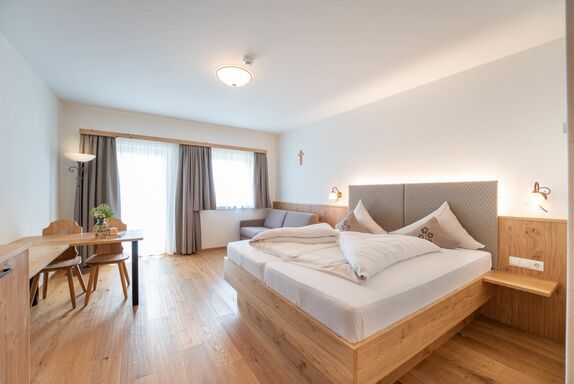 27m², welche für 1-3 Personen konzipiert sind: ein Doppelbett, sowie eine komfortable Schlafcouch finden in dem nördlich ausgerichteten Berg,-Wiesenblickzimmer Platz.