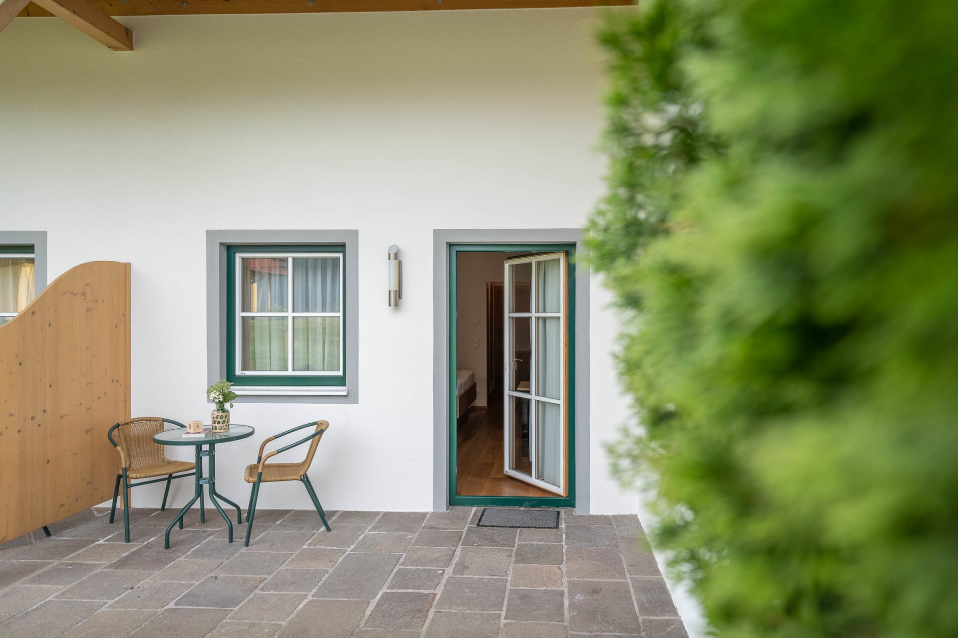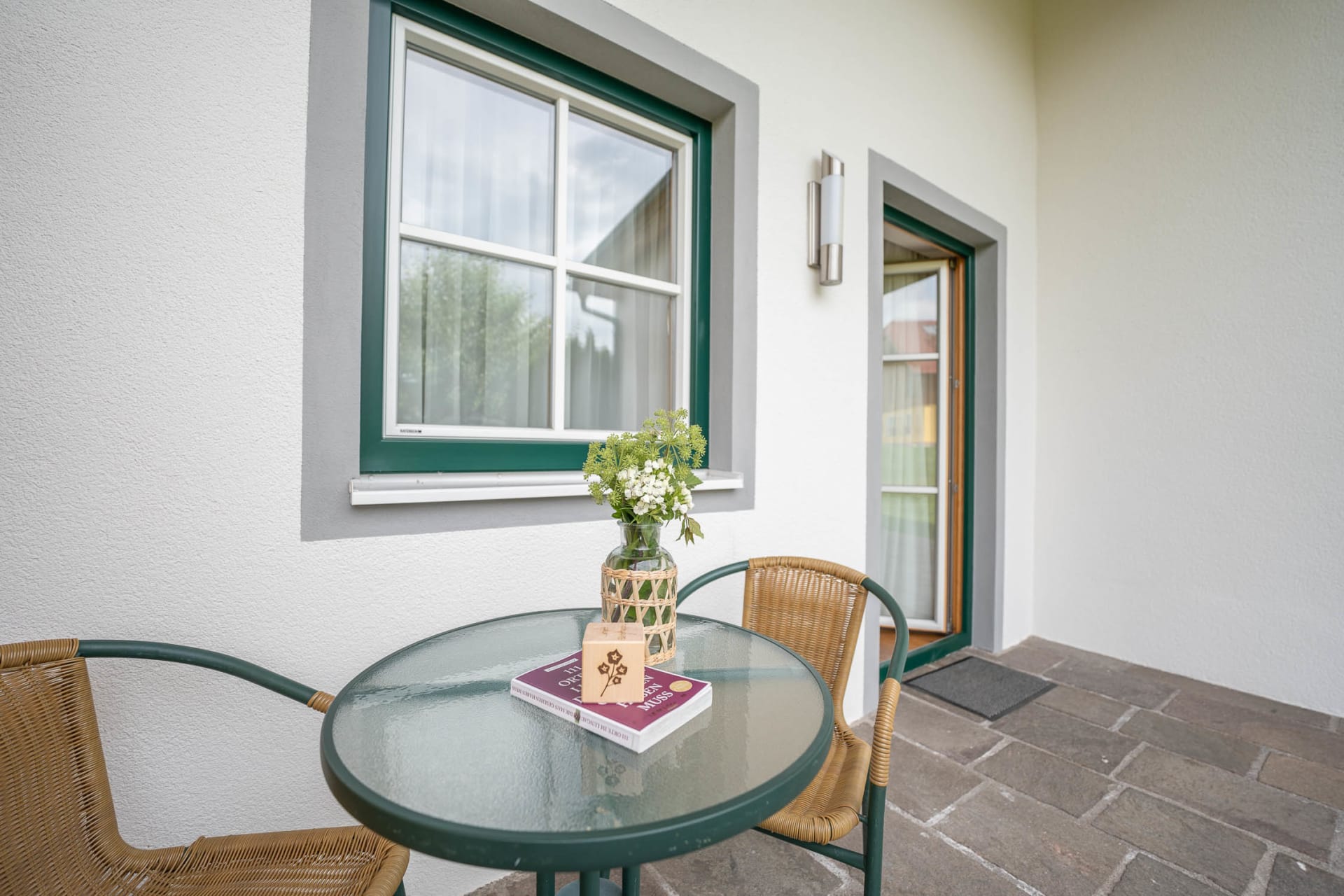 Die Terrassenzimmer LandLeben sind aufgrund des direkten, ebenerdigen Gartenzugangs vorallem bei Familien mit Kindern und/oder Hunden beliebt.