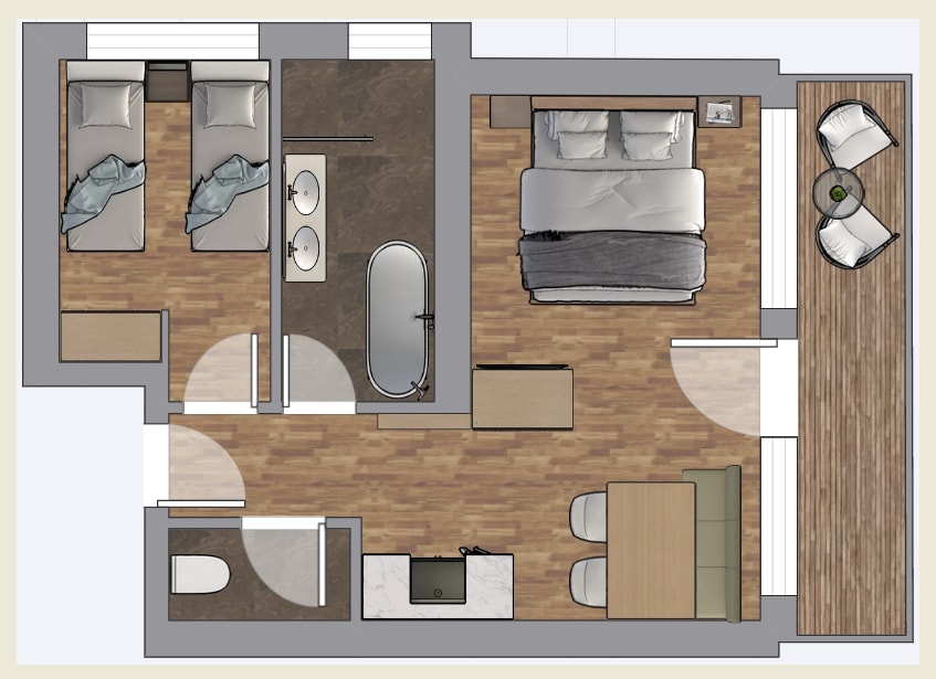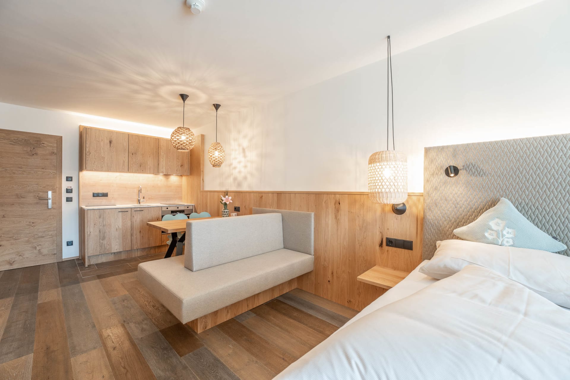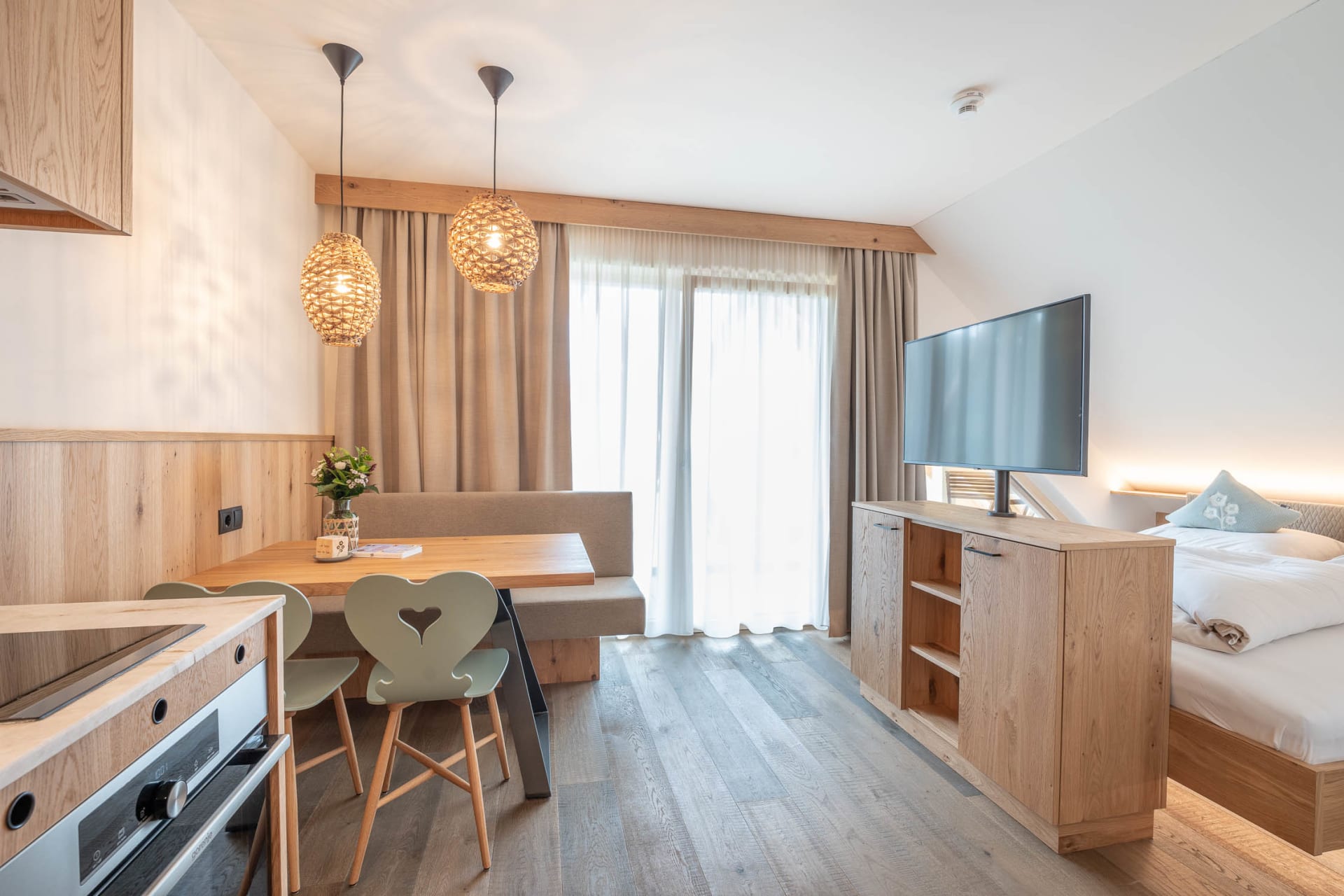 Unser Geheimtipp für alle Familien und Genießer. Wunderschönes Familienstudio für bis zu 5 Personen mit traumhaften Ausblick auf die Lungauer Bergwelt und Loggia. Ausgestattet mit zwei separaten Schlafbereichen, Sitzecke mit Esstisch, Küchenzeile, Backrohr-Mikrowellenkombination, Kühlschrank, Badezimmer mit Doppelwaschtisch, Badewanne, Dusche und WC , Edelholzböden, Wlan, Föhn und Smart TV. Besonderes Highlight: freistehende Badewanne und on the top of löckerwirt - ganz oben mit dem schönsten Ausblick des ganzen Hauses!