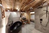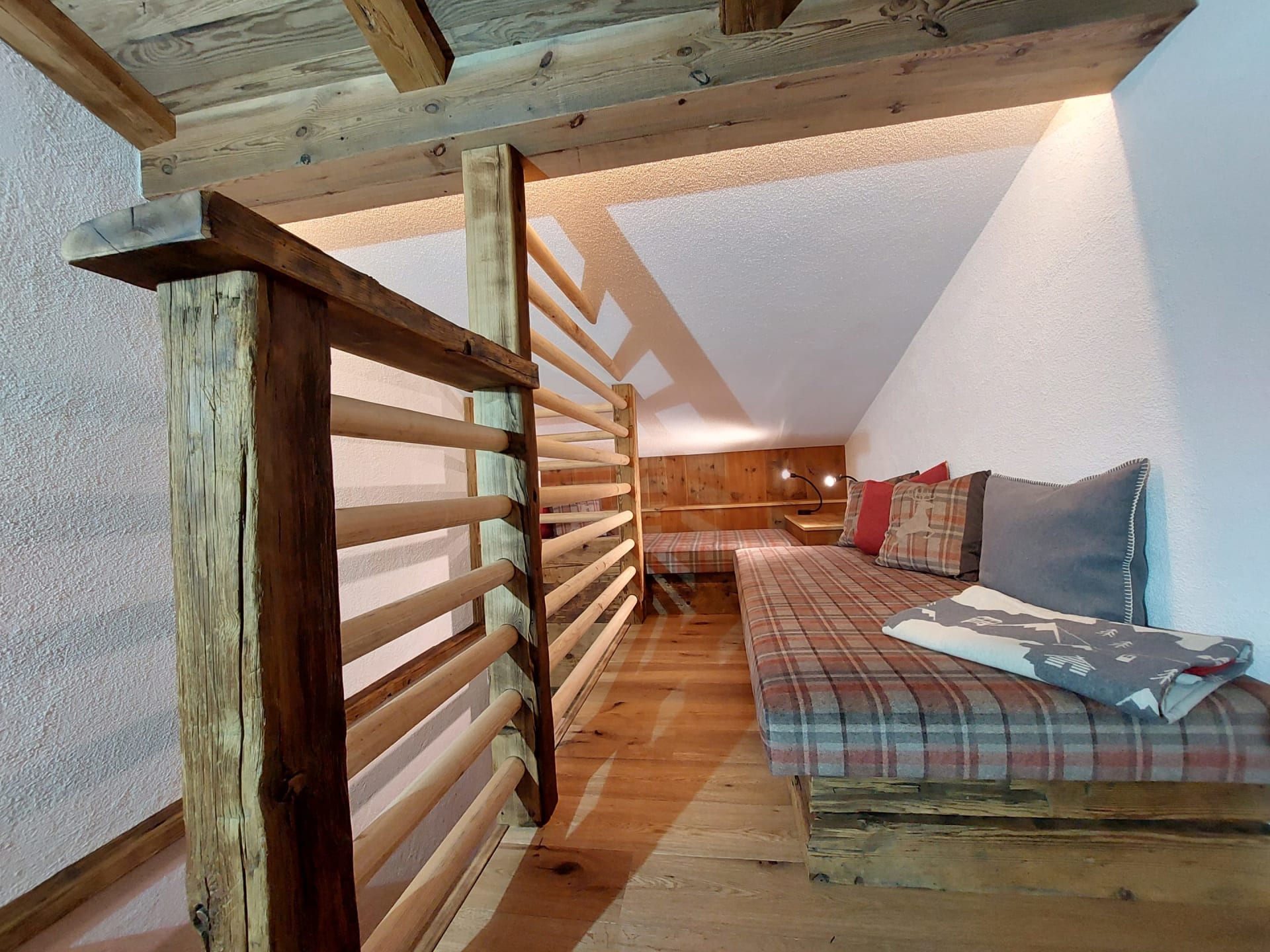In diesem Wohnraum befindet sich auch ein großes Doppelbett mit Zugang zum begehbaren Schrank. 1 weiteres Schlafzimmer mit 1 Doppelbett und 2 weiteren getrennten Betten (Achtung Dachschräge) befindet sich im Obergeschoß;