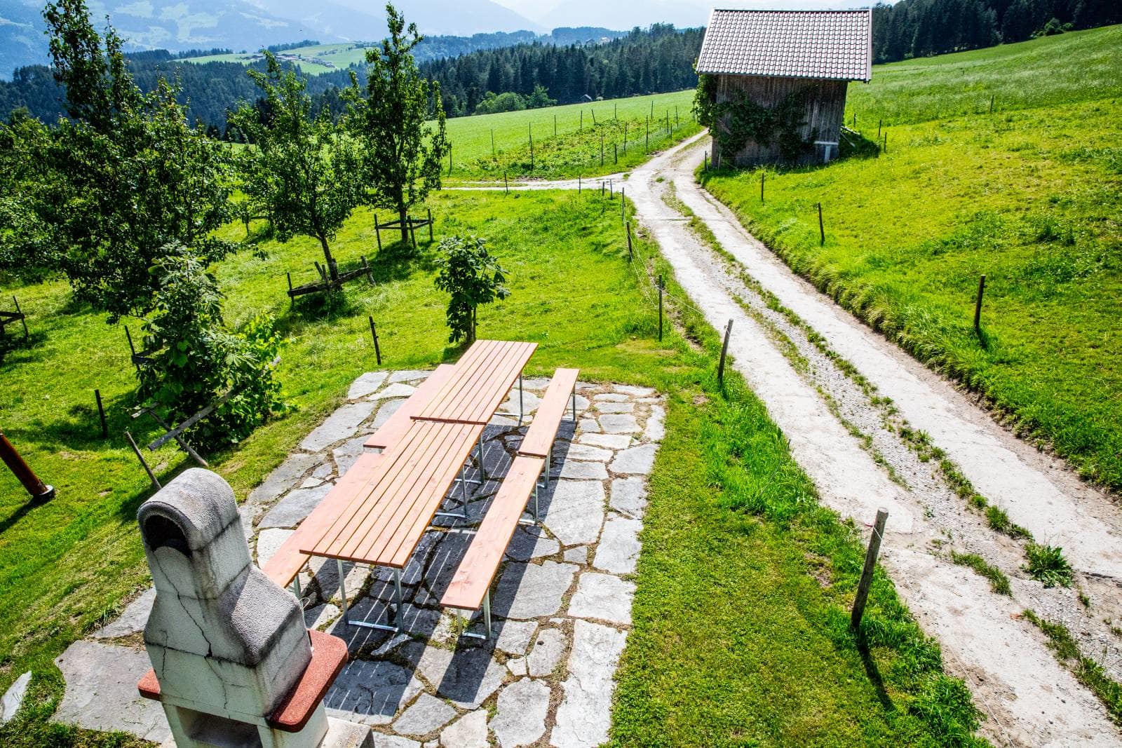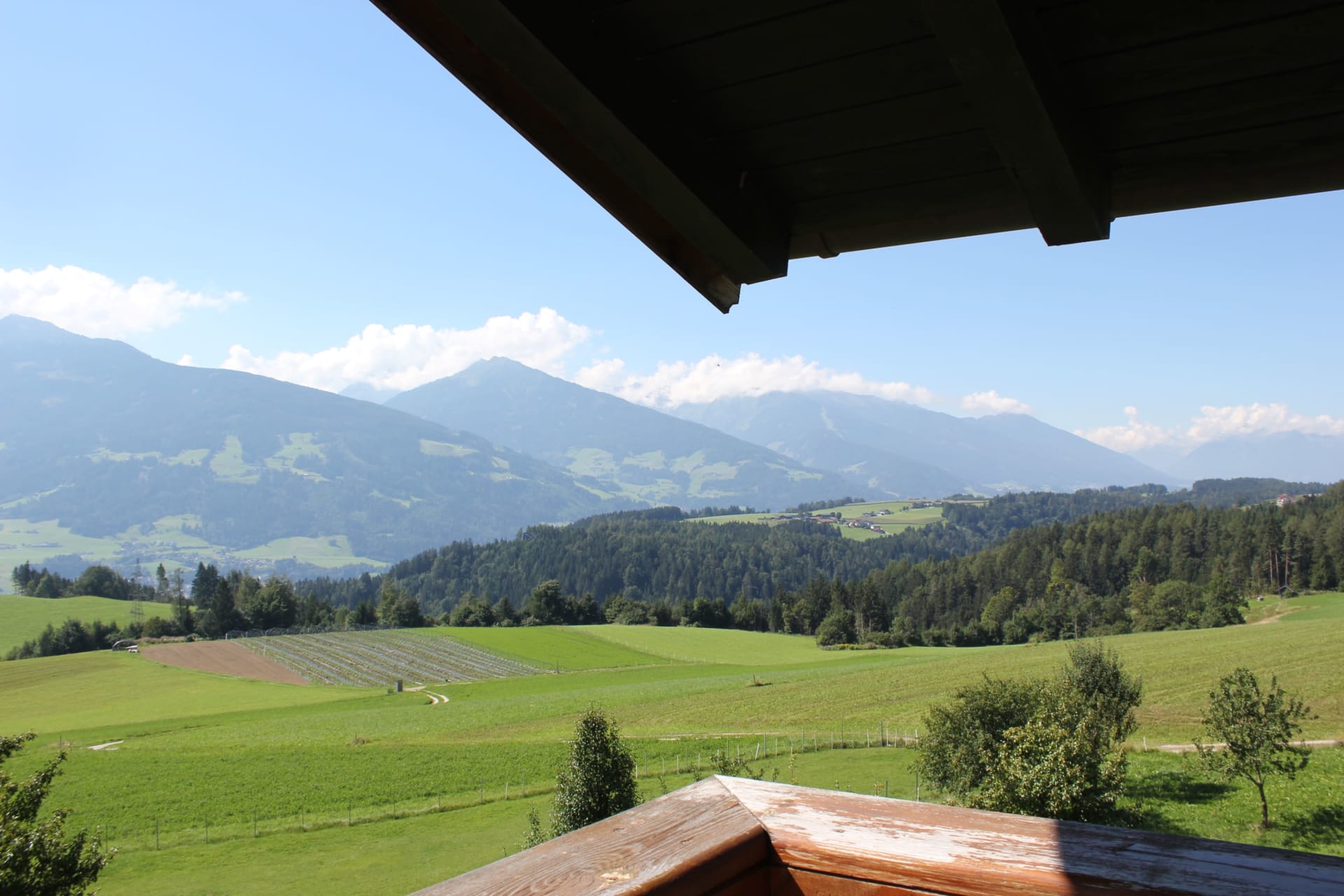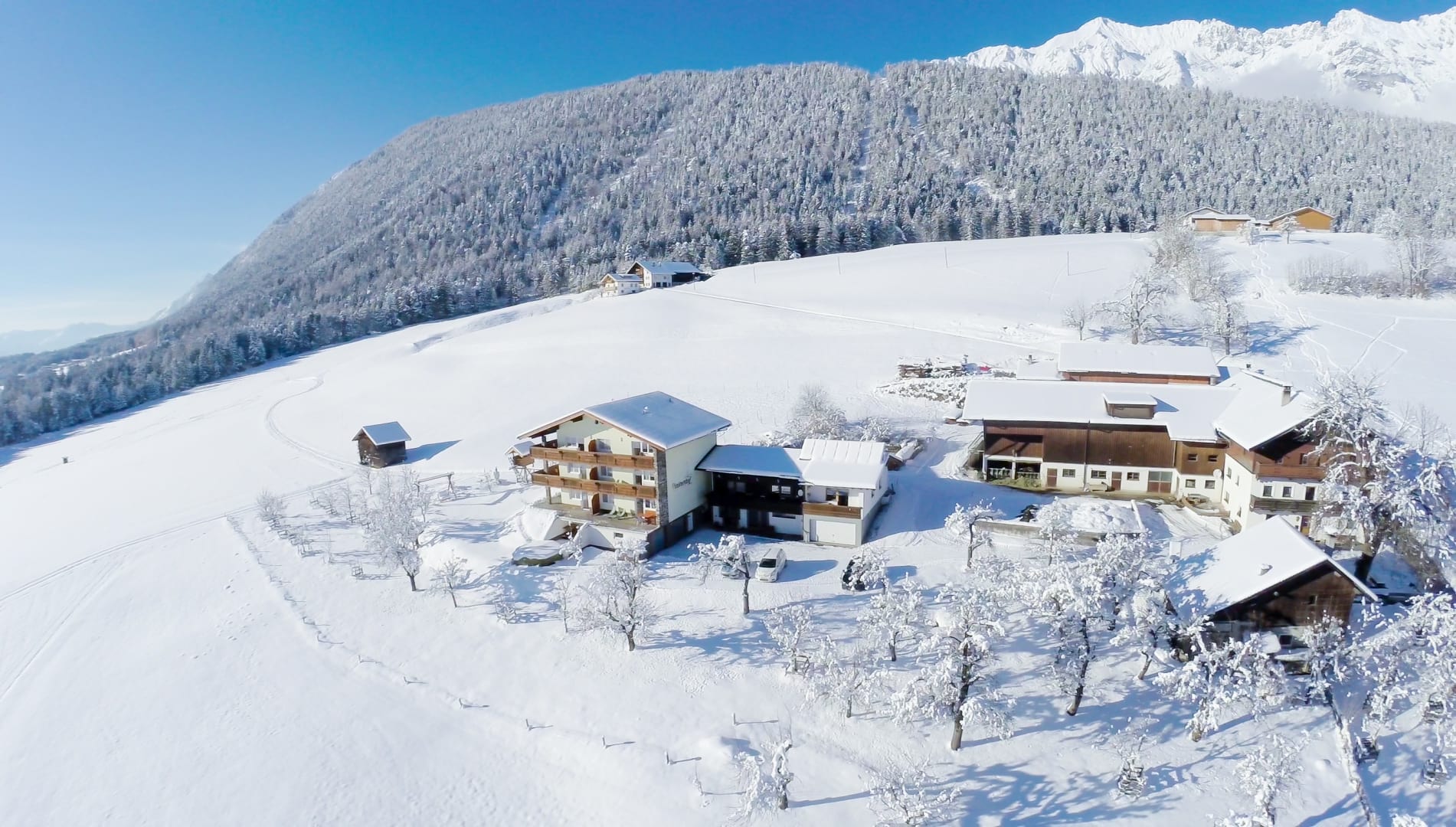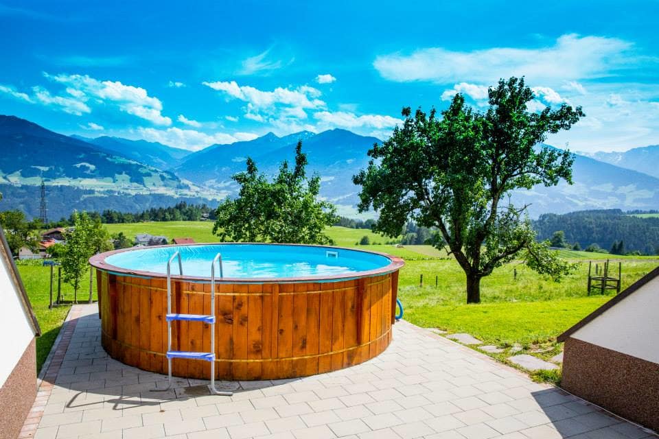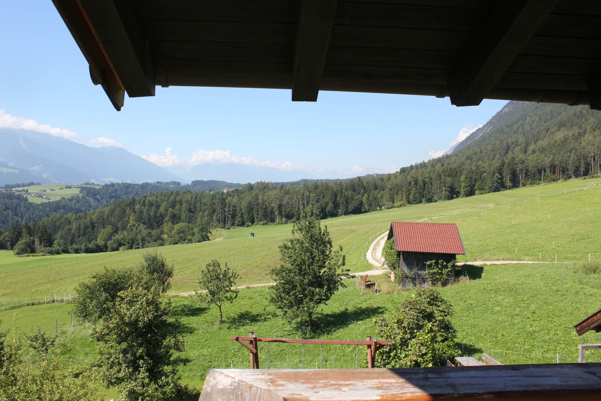 Die Ferienwohnung, von der Sie einen herrlichen Blick über das Inntal genießen können, ist 45 m vom Bauernhof entfernt.