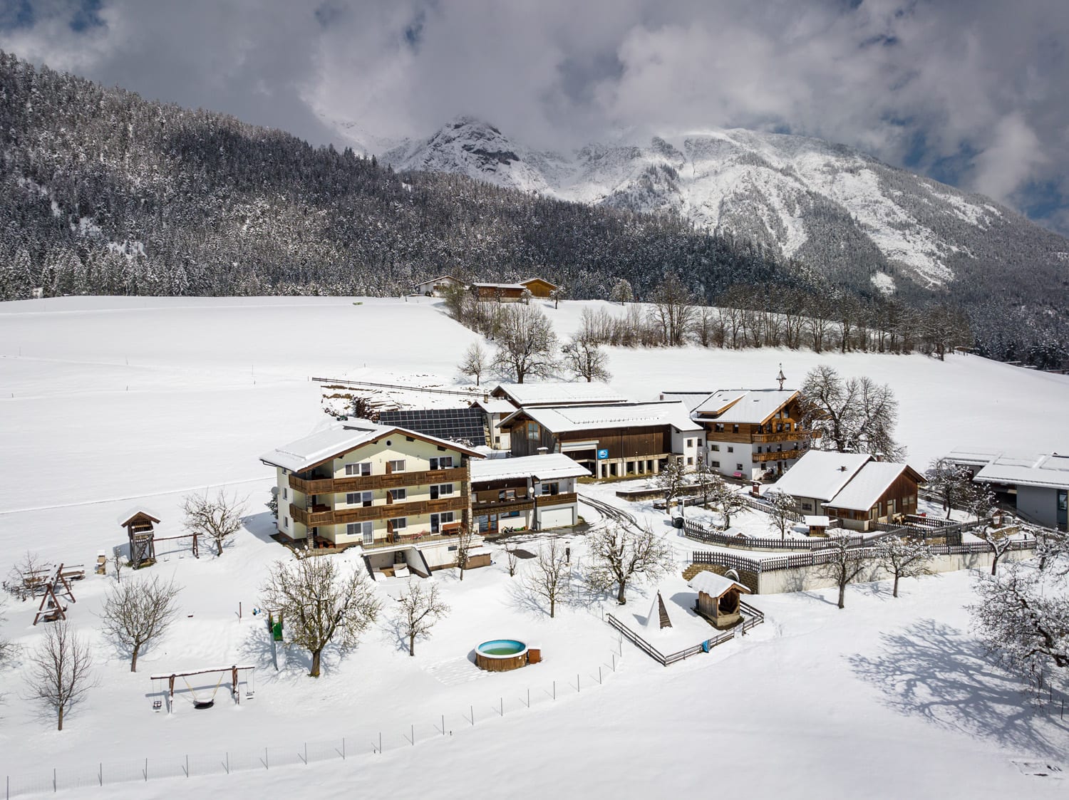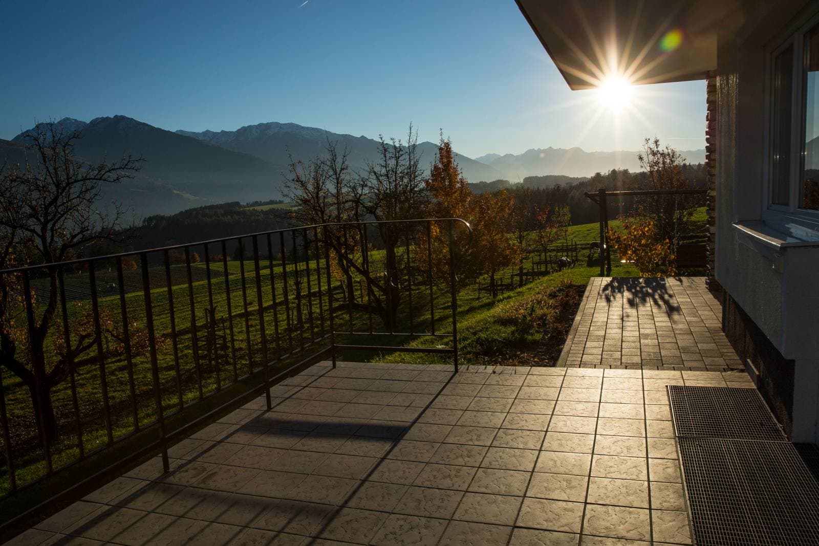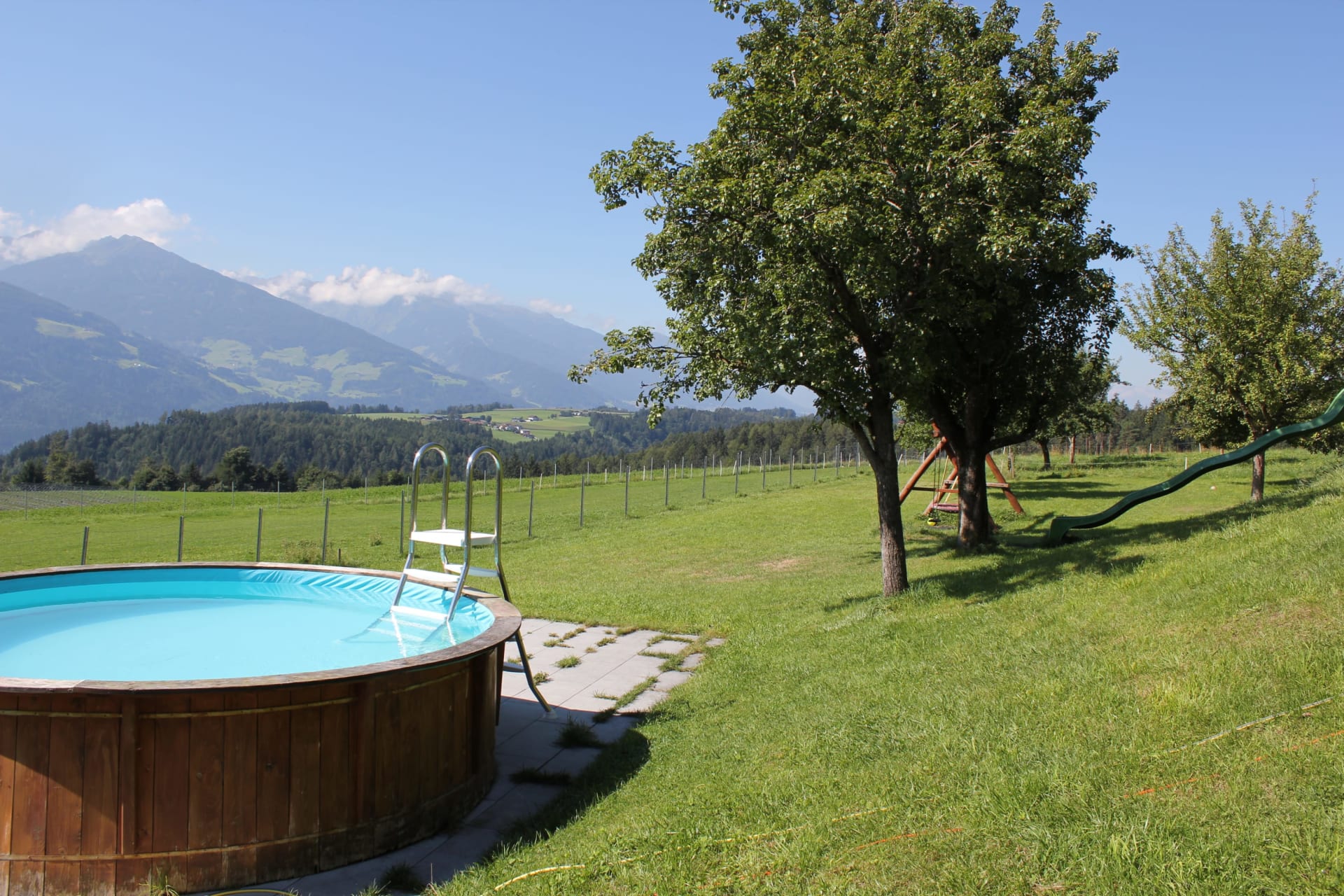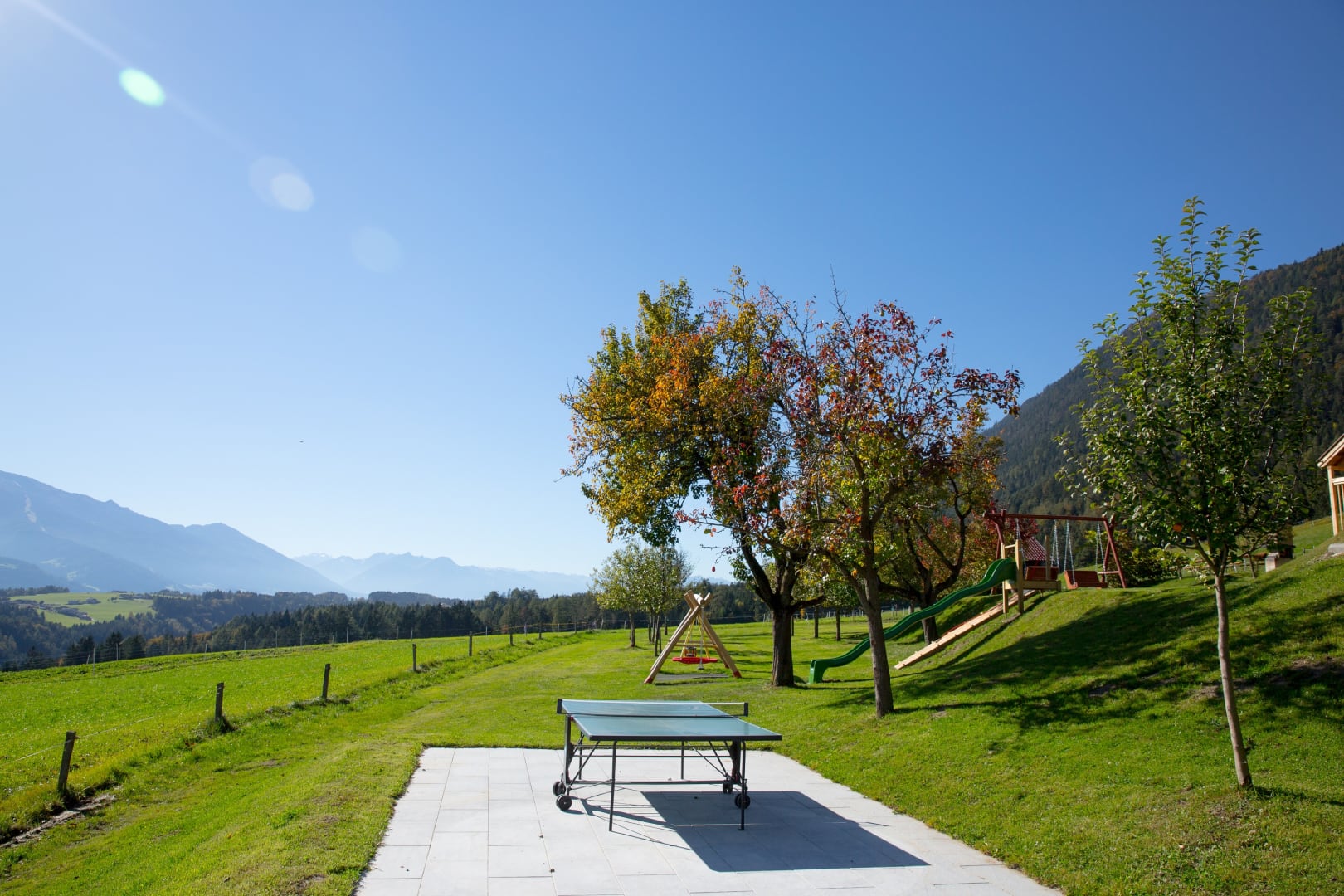Die Ferienwohnung, von der Sie einen herrlichen Blick über das Inntal genießen können, ist 45 m vom Bauernhof entfernt.