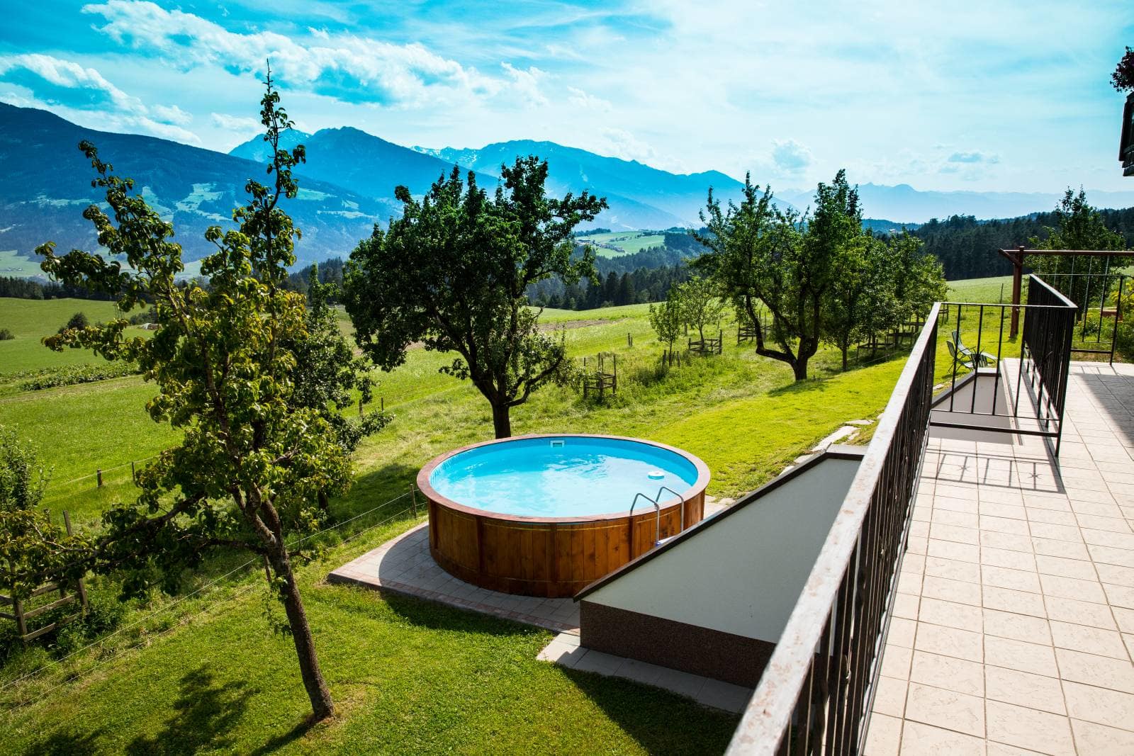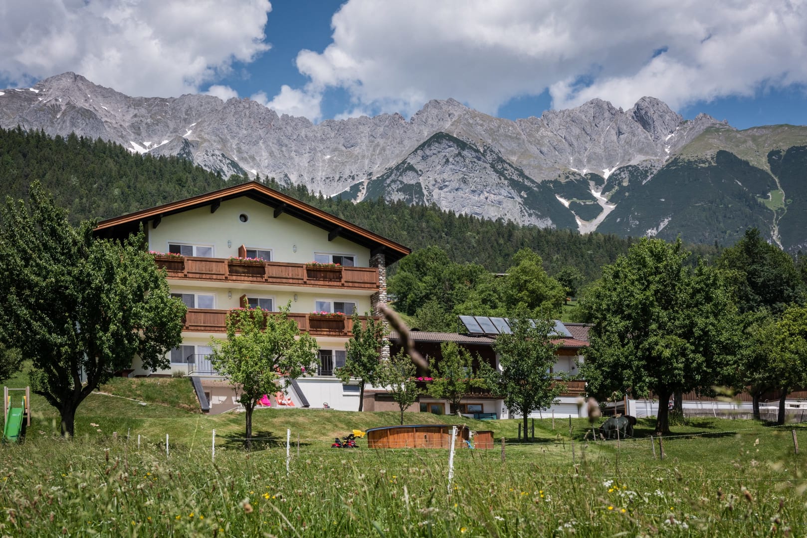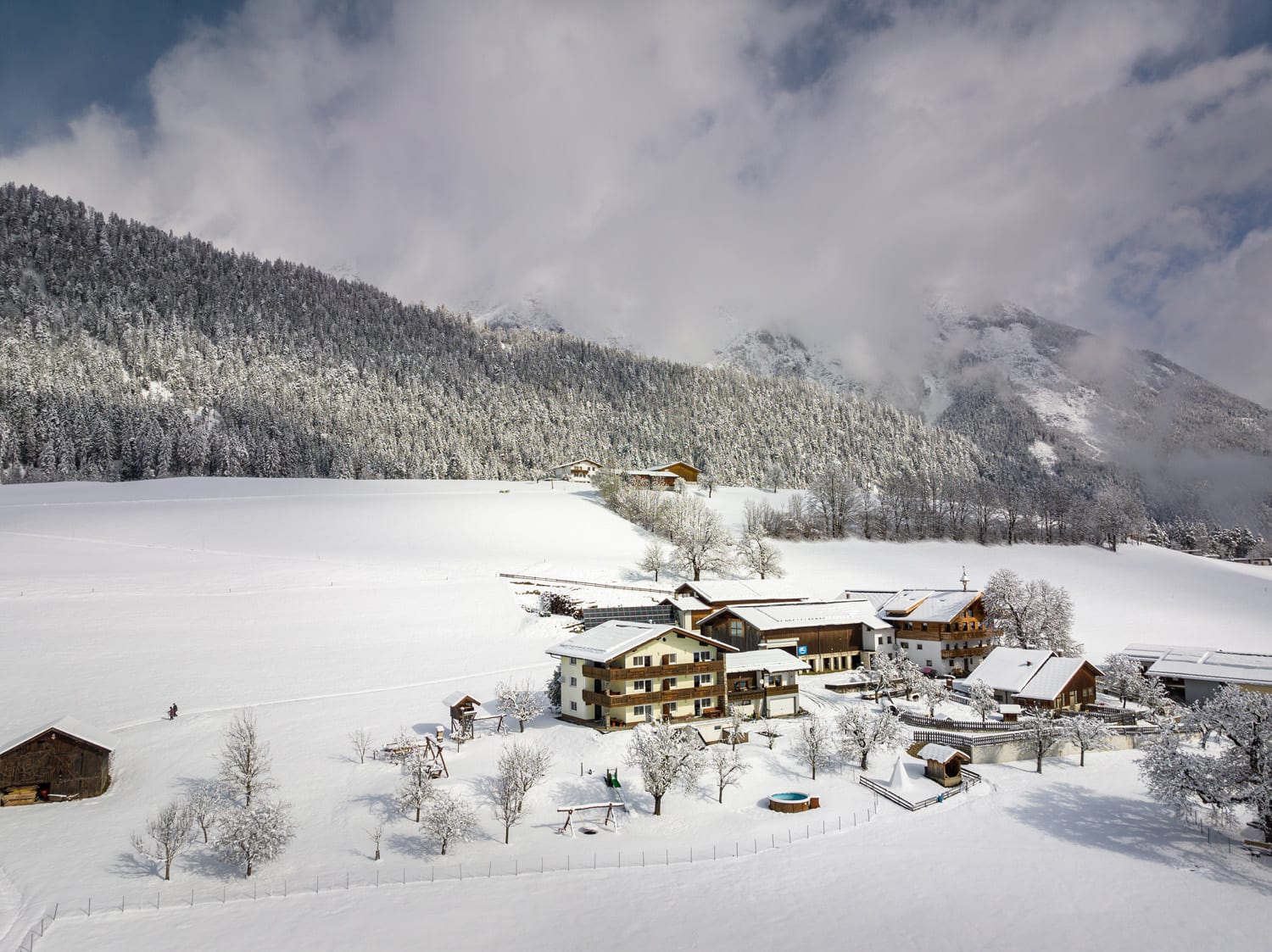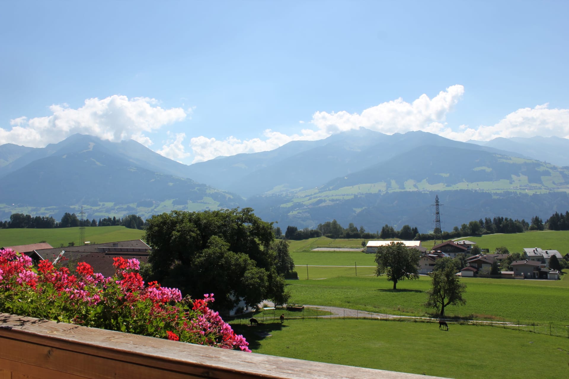Die Ferienwohnung, von der Sie einen herrlichen Blick über das Inntal genießen können, ist 45 m vom Bauernhof entfernt.