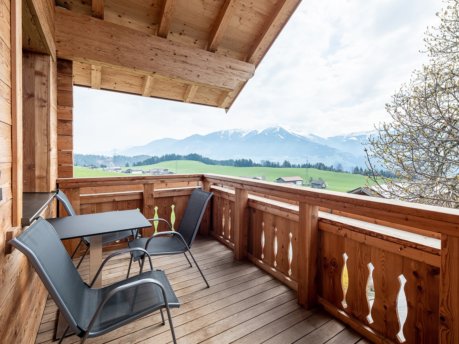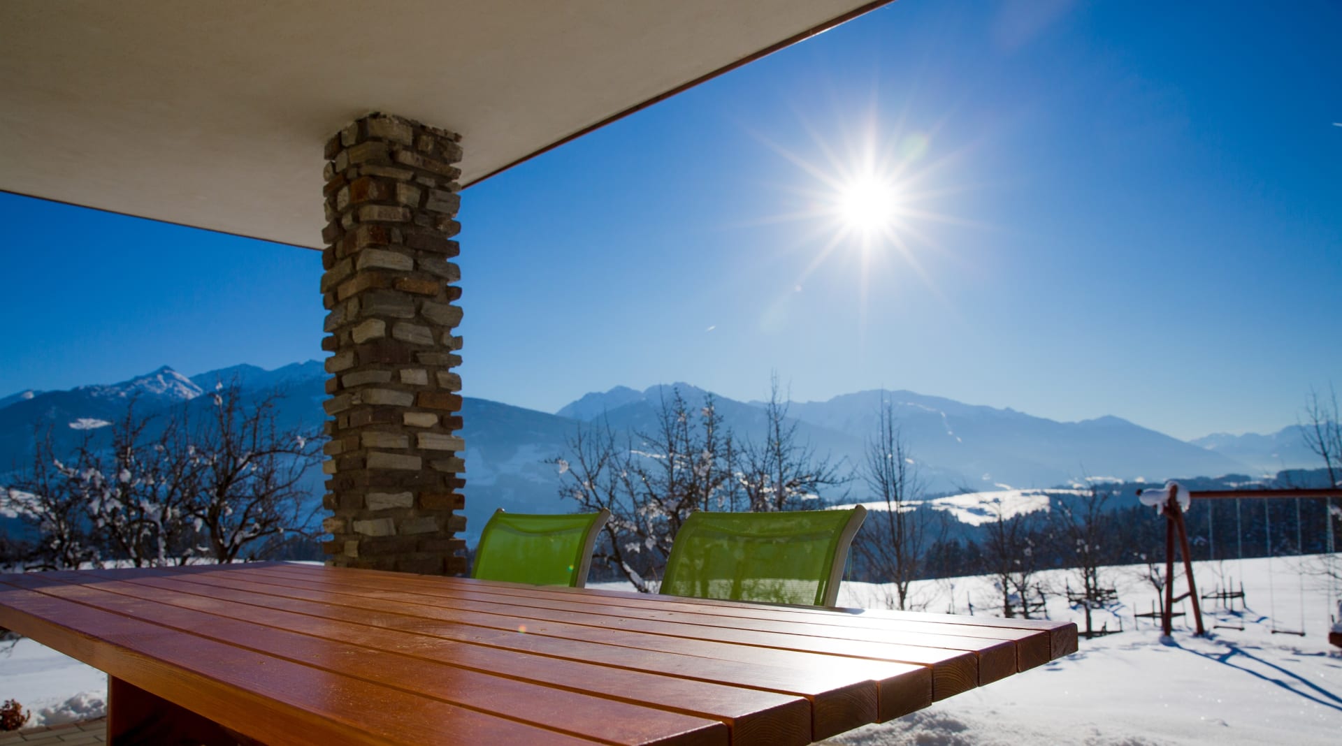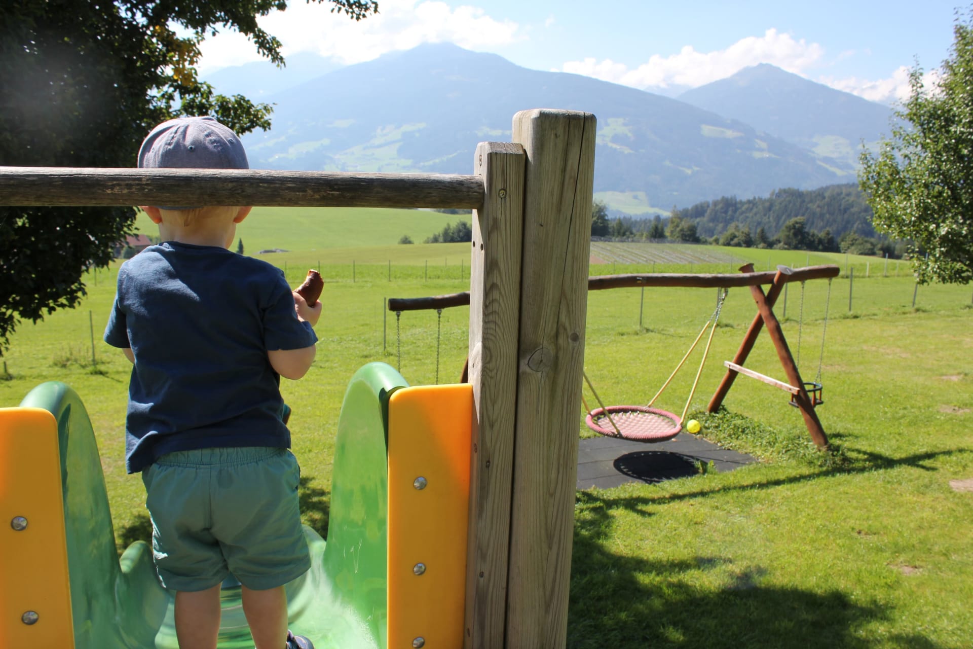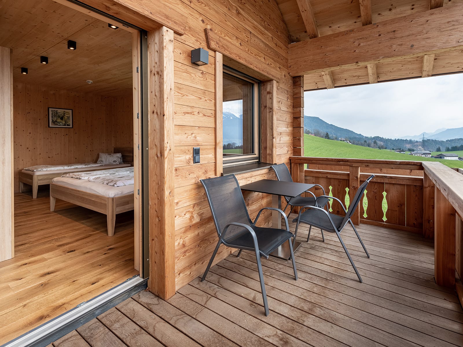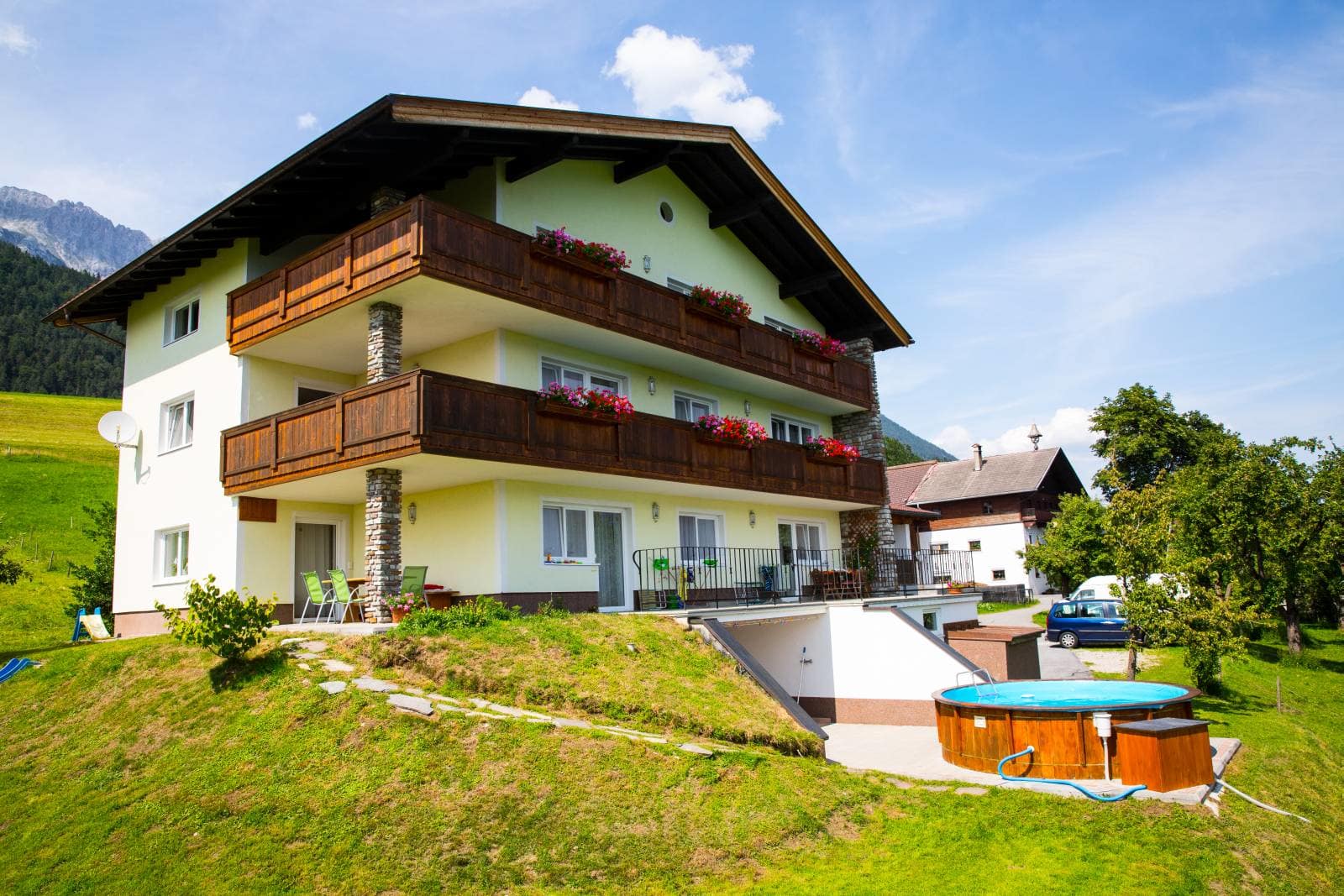 Die Ferienwohnung, von der Sie einen herrlichen Blick über das Inntal genießen können, ist 45 m vom Bauernhof entfernt.