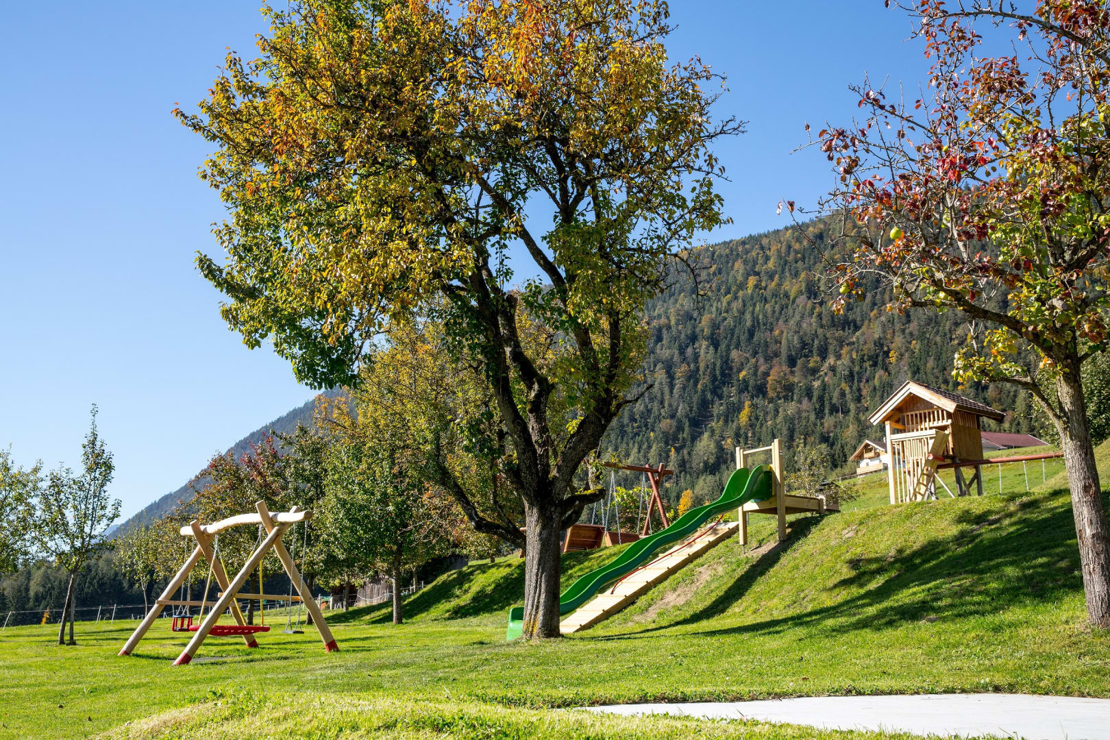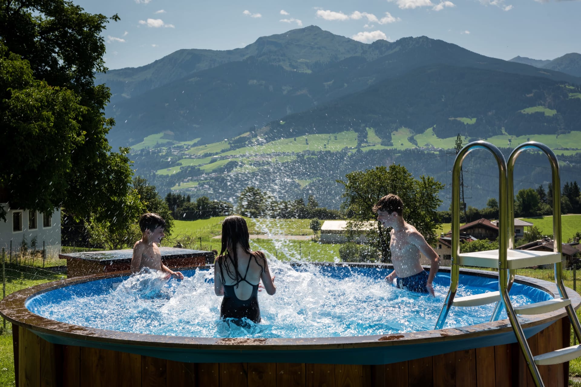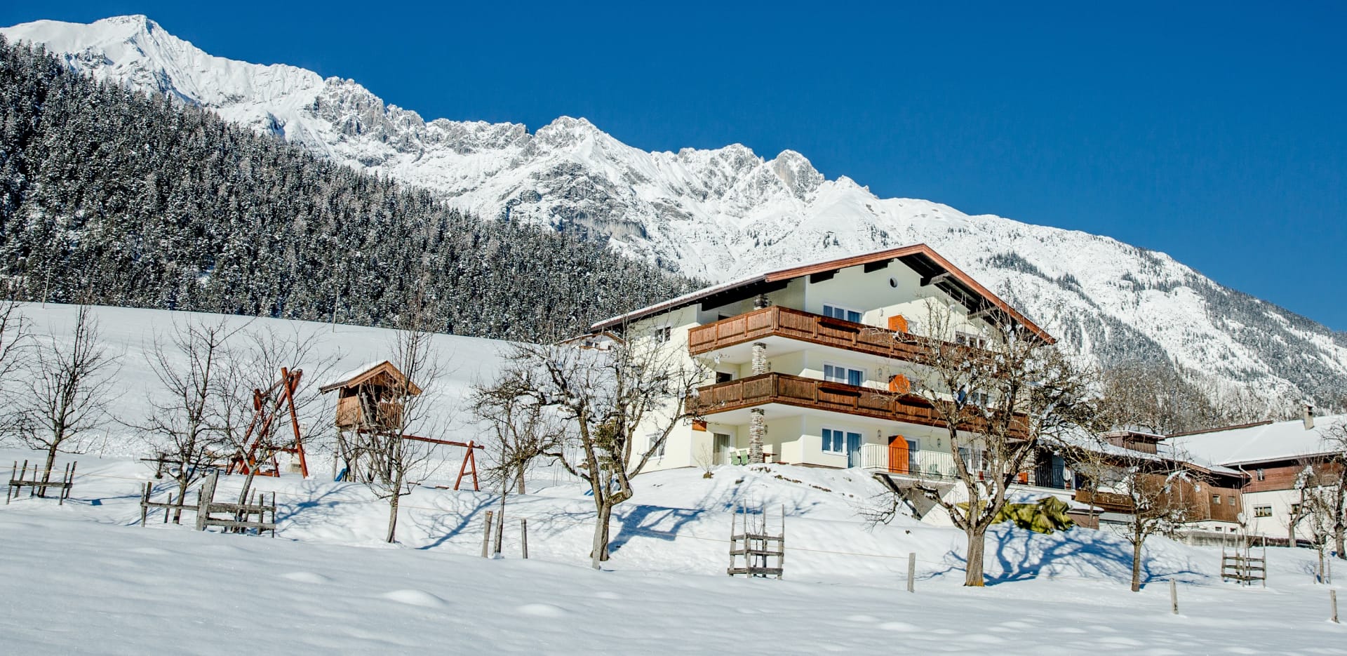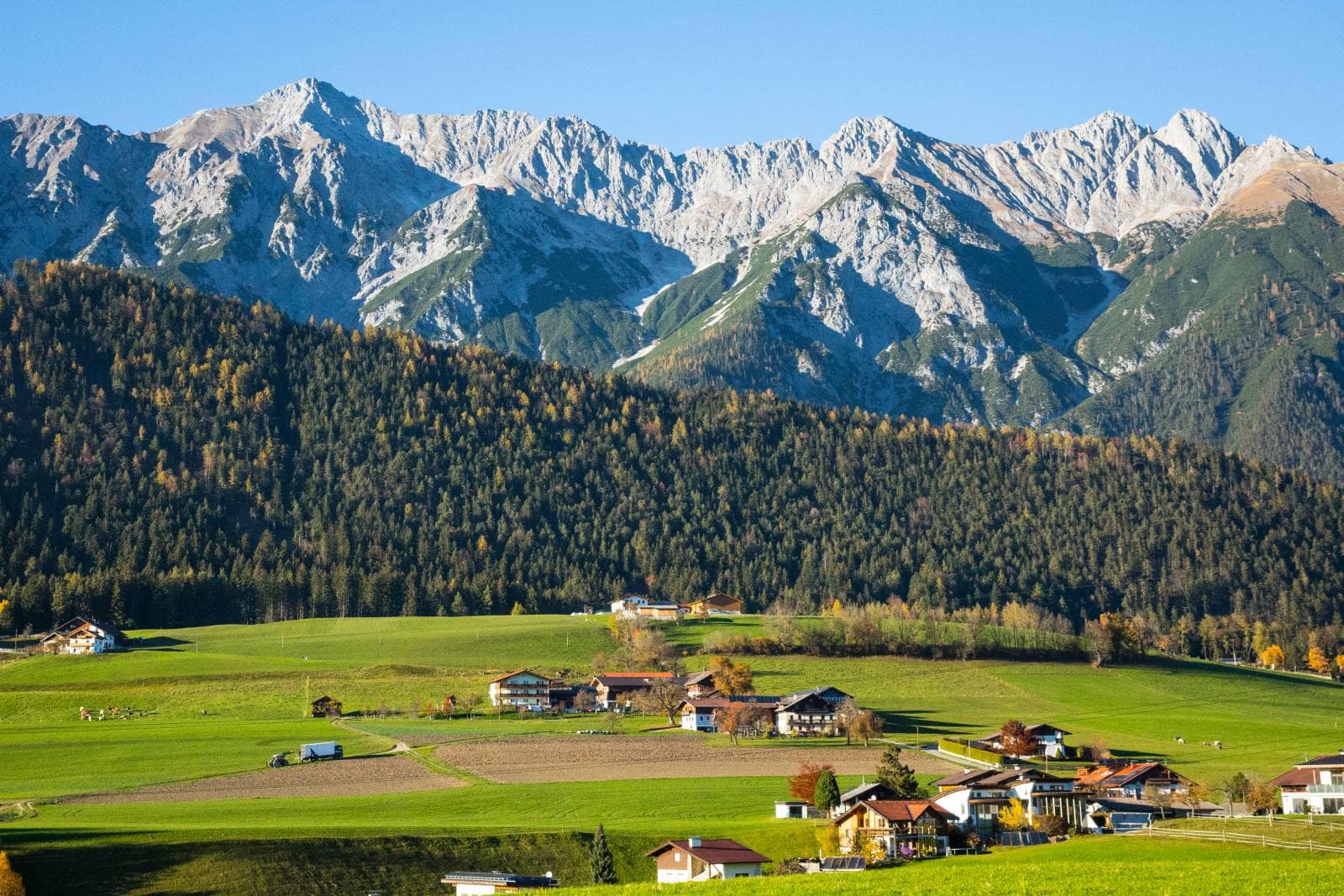 Die Ferienwohnung, von der Sie einen herrlichen Blick über das Inntal genießen können, ist 45 m vom Bauernhof entfernt.