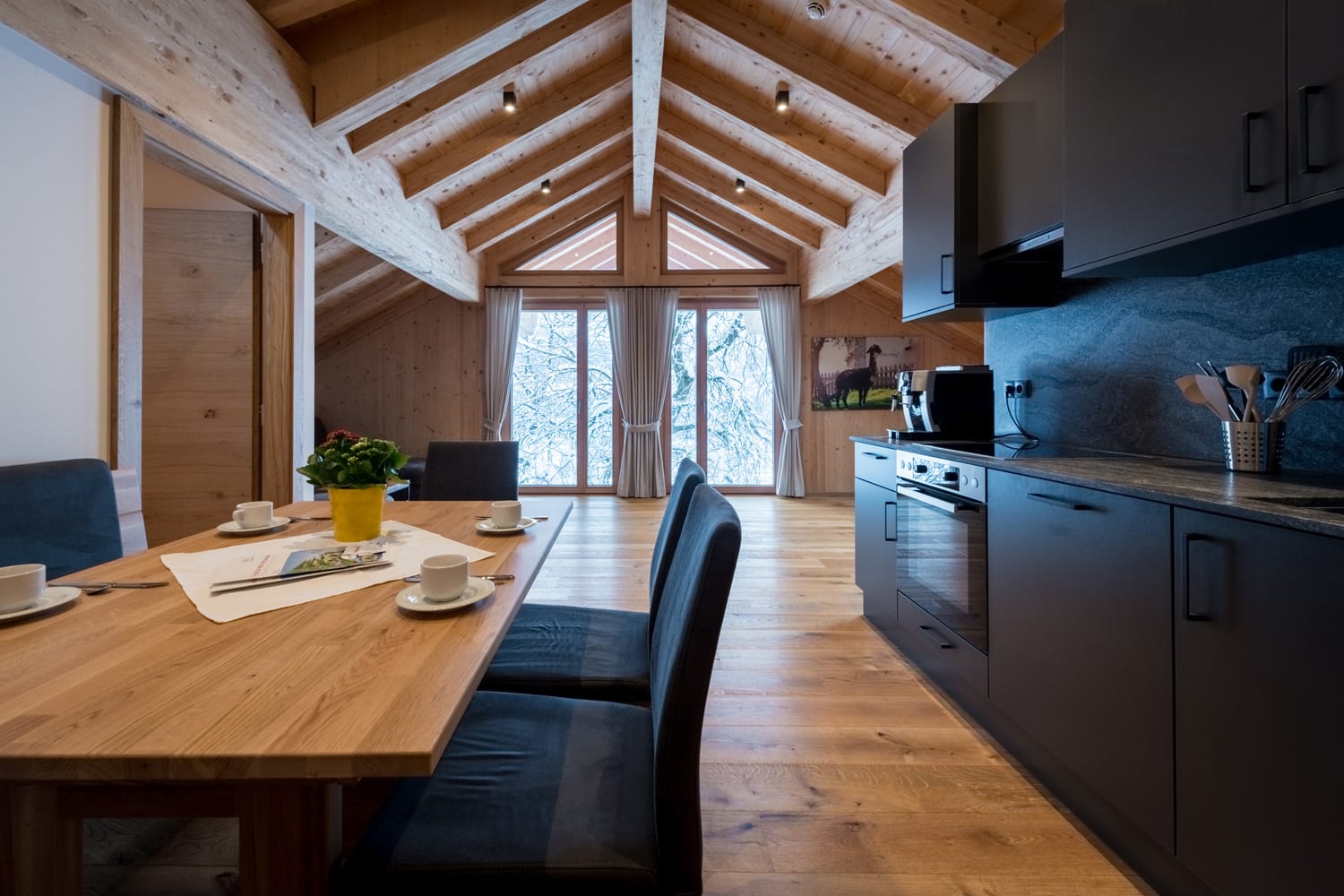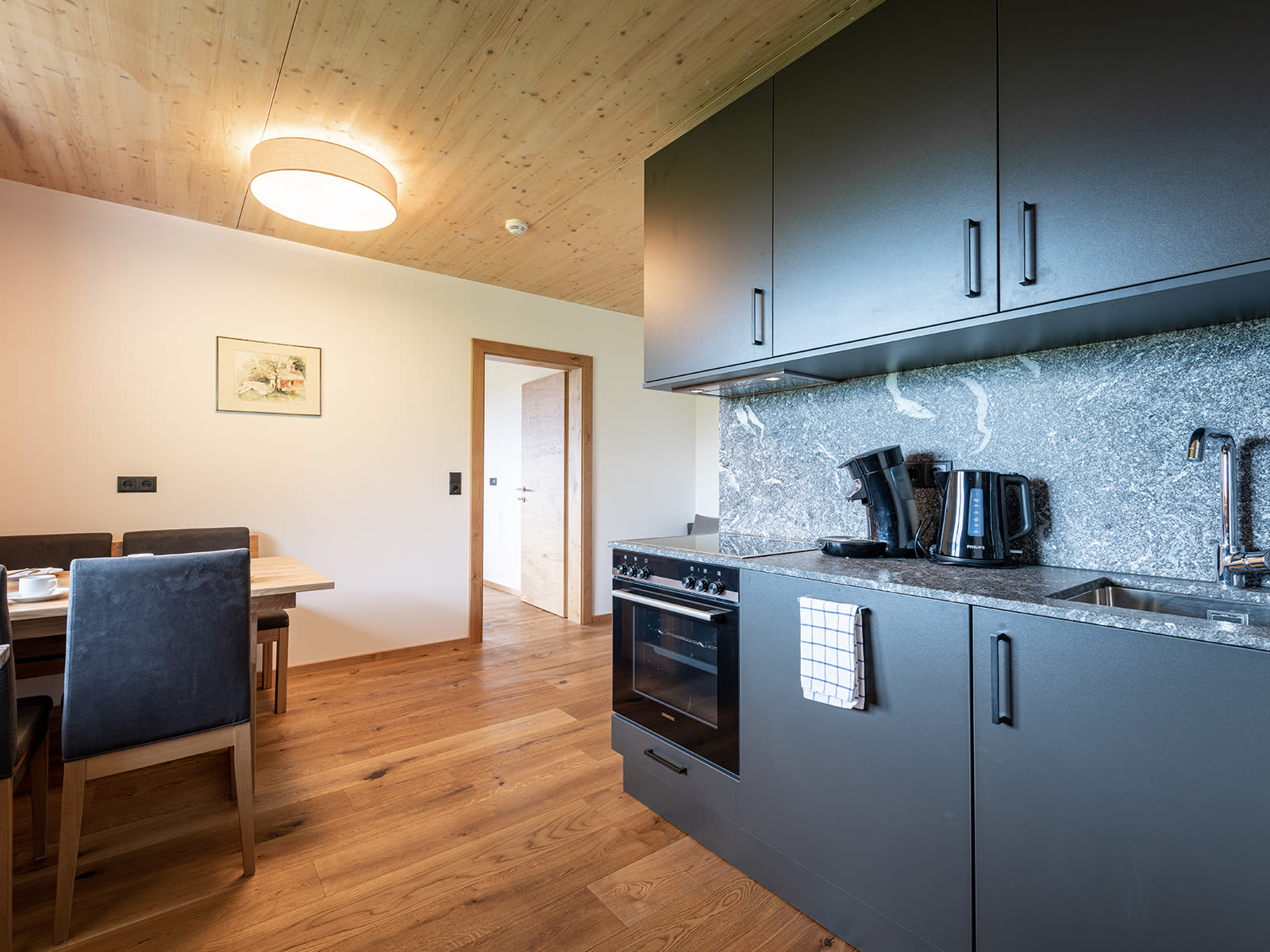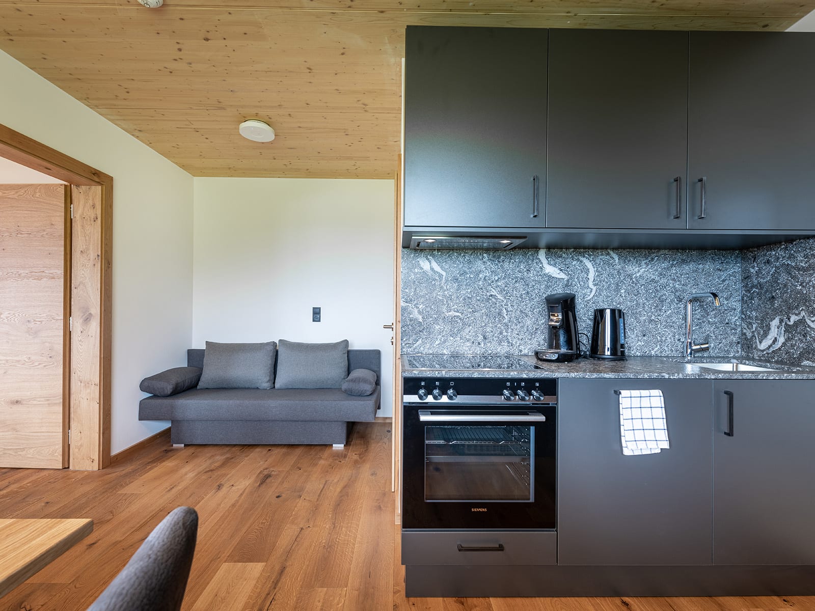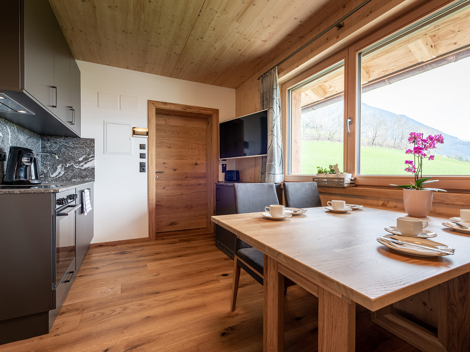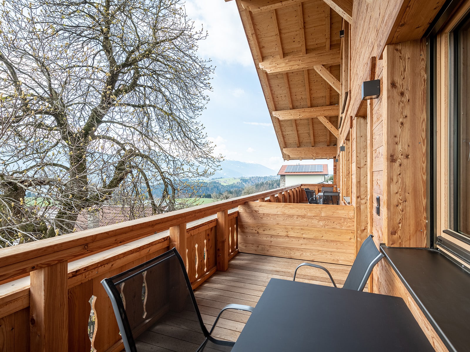 Neues Apartement mit Panoramablick auf die Berge für 2-3 Personen, 1 Schlafzimmer (1 Doppelbett, 1 Einzelbett), Wohnküche, Dusche/WC und Balkon