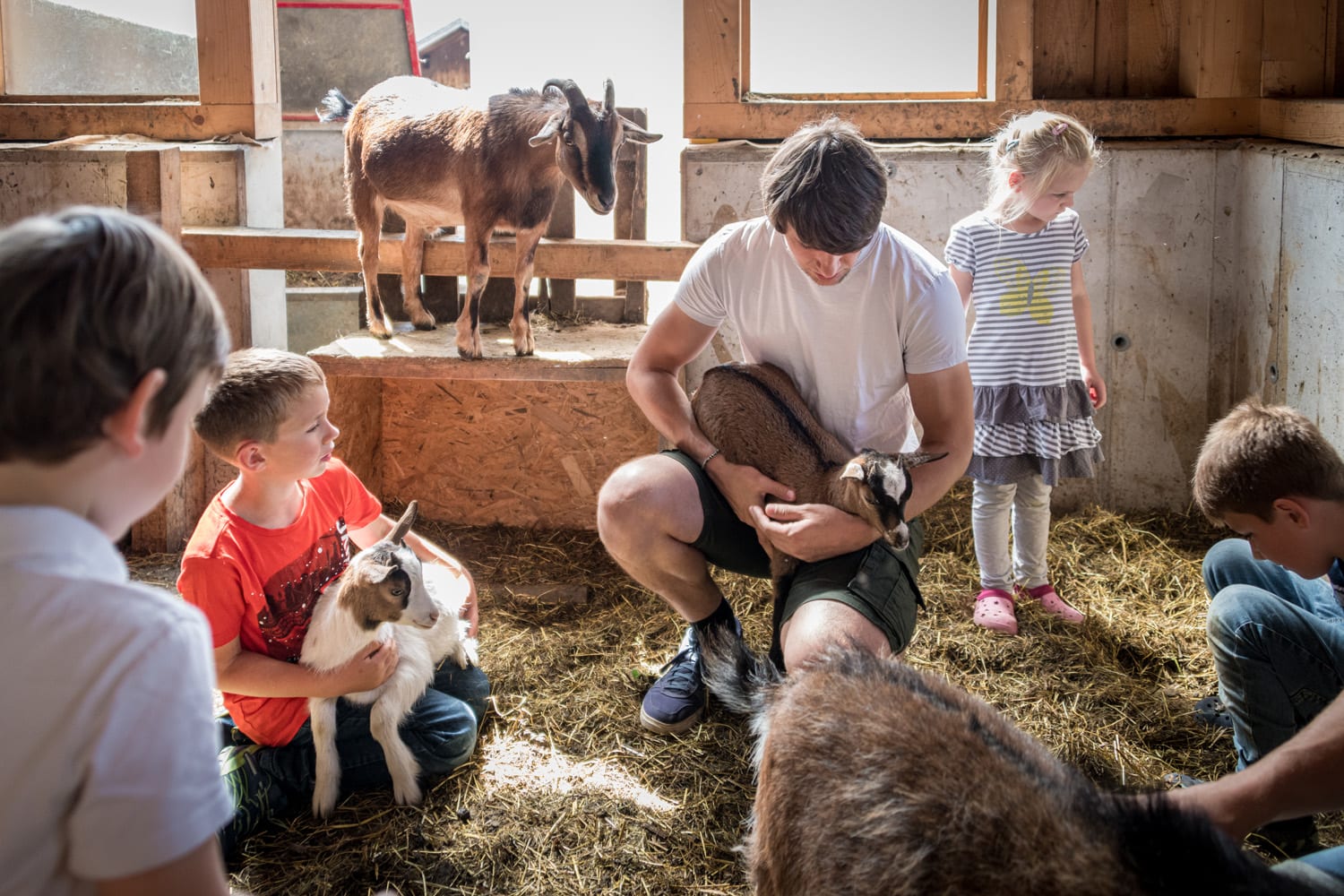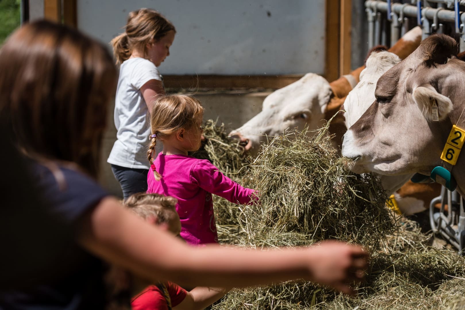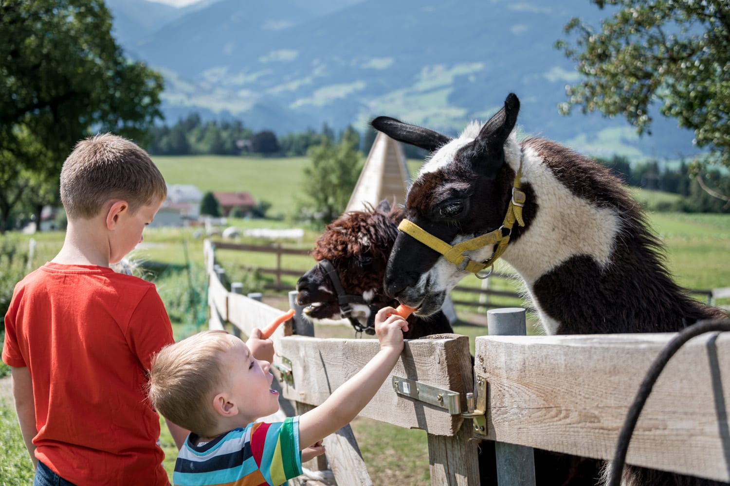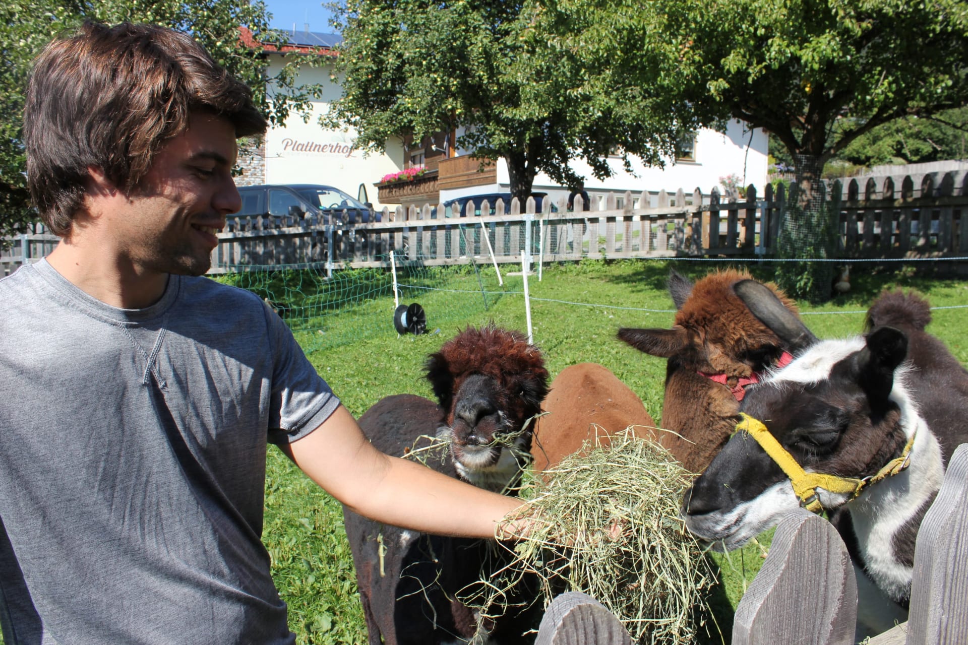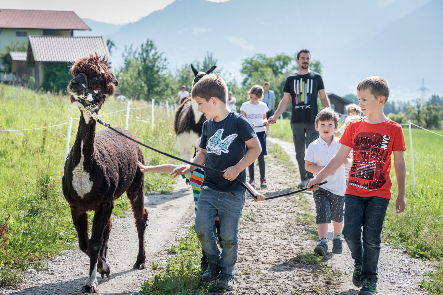 Auf unserem Hof halten wir viele Tiere: Kühe, Kälber, Hühner, indische Laufenten, Hasen, 3 Ponys und viele Katzen, Es freut uns, drei neue Tiere am Hof Willkommen zu heißen. Das Lama Konrad ,Alpaka Filu und Alpaka Gustaf. Gerne können Sie uns auf kleine Wanderungen begleiden (auf Anfrage) .