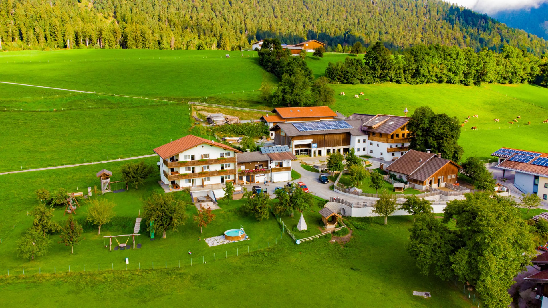 Wir betreiben hauptsächlich Vieh- und Milchwirtschaft . Von den Früchten in unserem Obstgarten produzieren wir Tiroler Edelbrände in verschiedenen Sorten.