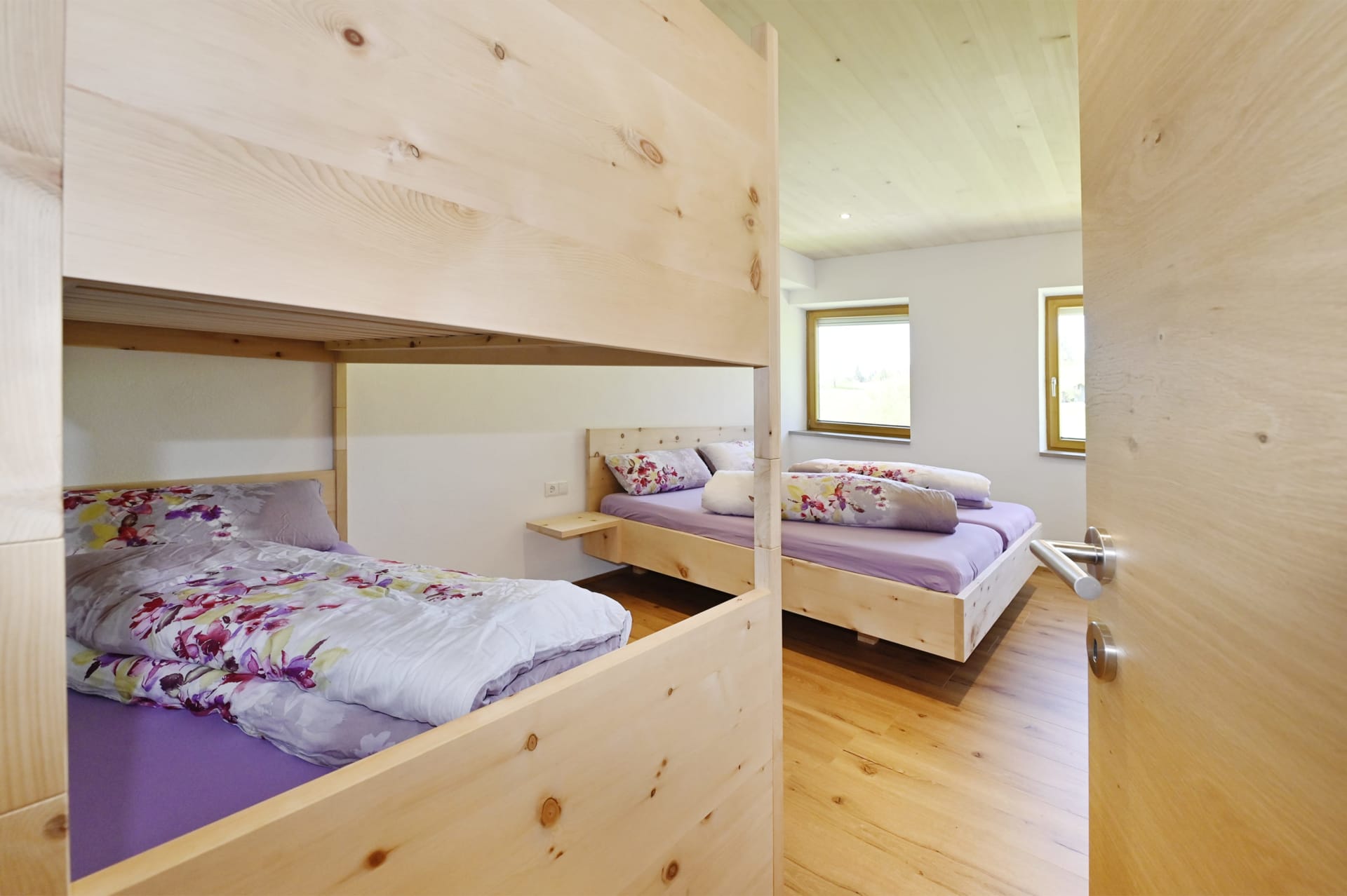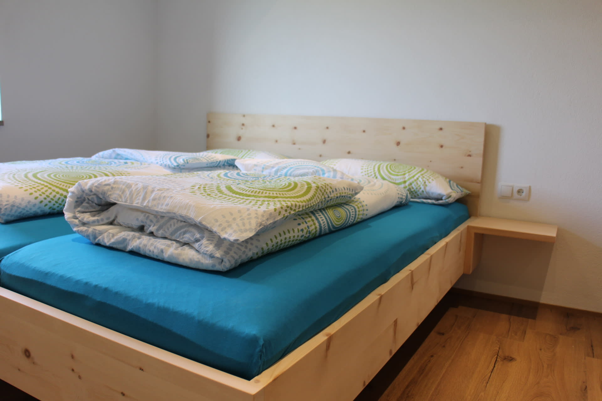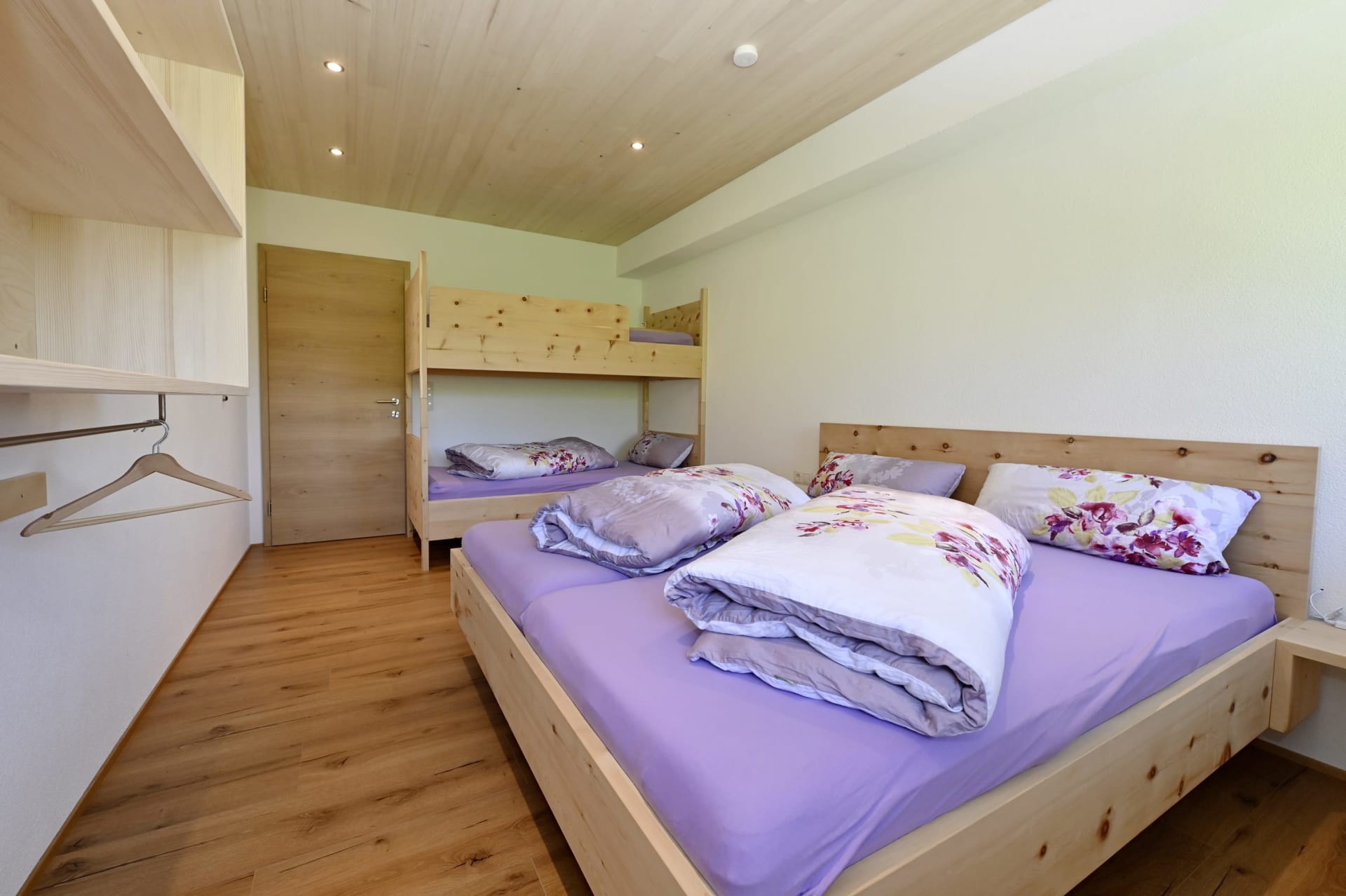Wir – die Familie Vögel – bieten Ihnen am AuszeitHof in Sulzberg die Möglichkeit eine gute Zeit in Vorarlberg zu verbringen. Die neue, hochwertig ausgestattete, 103m² große Wohnung mit Zirbenholzbetten in drei Schlafzimmern schafft Raum, um Zeit mit den Liebsten zu verbringen, für das Zusammensein genauso wie den Rückzug.