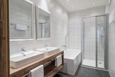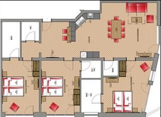 Appartement im Erdgeschoss mit ca. 127 m², für 6 Personen, voll ausgestattete Wohnküche mit Backrohr, Microwelle, Geschirrspül- und Kaffeemaschine, gemütlicher Esstisch, Kabel TV, großer Wohnbereich mit Sofalandschaft (Schlafmöglichkeit für 2 Personen), 3 Schlafzimmer mit Doppelbett, großen Kleiderschrank, 3 Badezimmer mit Dusche/Badewanne und WC, ca. 10 m² Terrasse.
