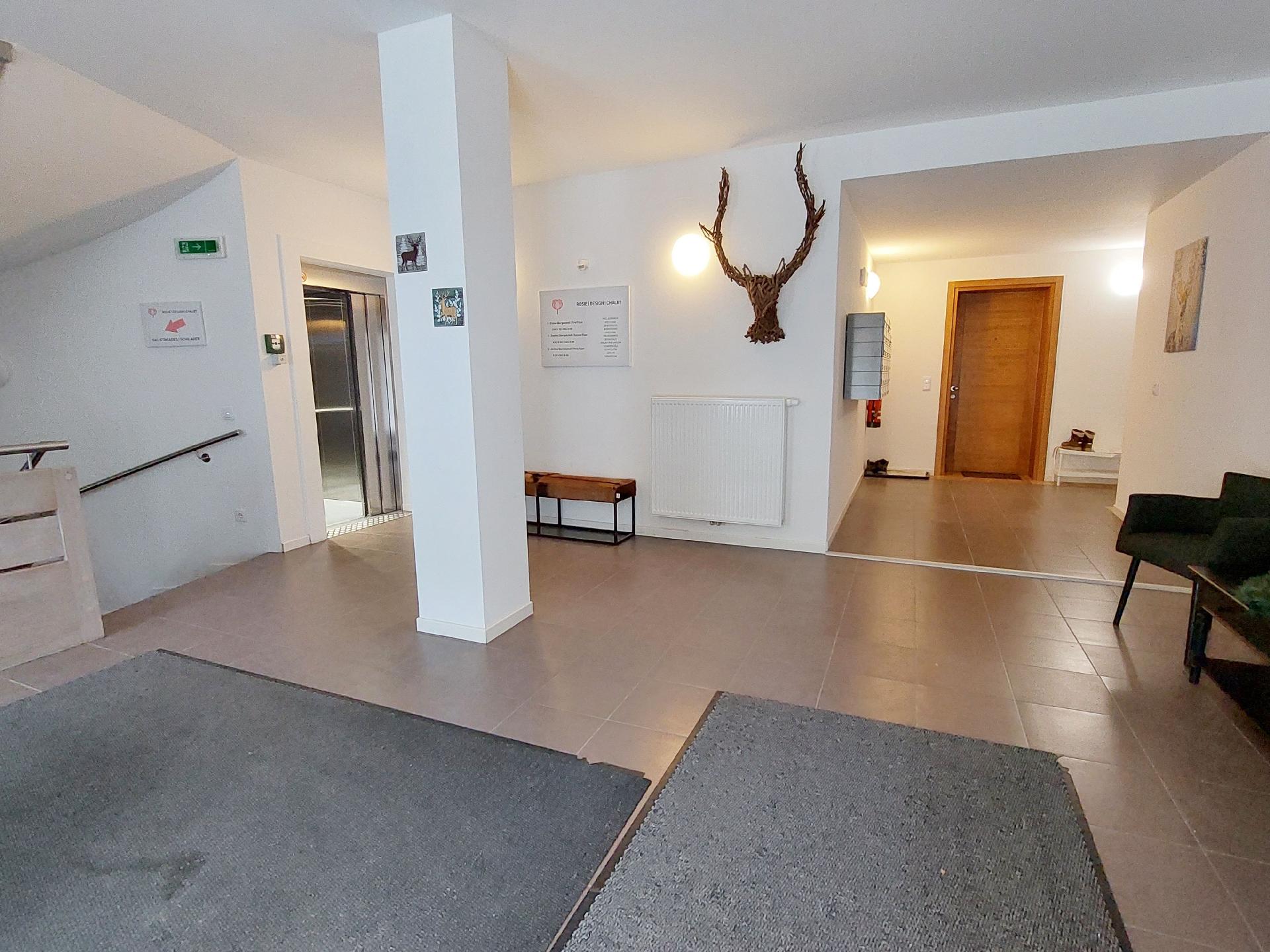 Äußerlich besticht ROSIE design durch praktische Annehmlichkeiten wie einen Aufzug für bequemen Zugang und zwei private Parkplätze. Der Zugang zu einem gemeinschaftlich genutzten Skiraum und Waschraum legt den Fokus vollständig auf das Skierlebnis und gestaltet Ihren Urlaub so angenehm wie möglich.