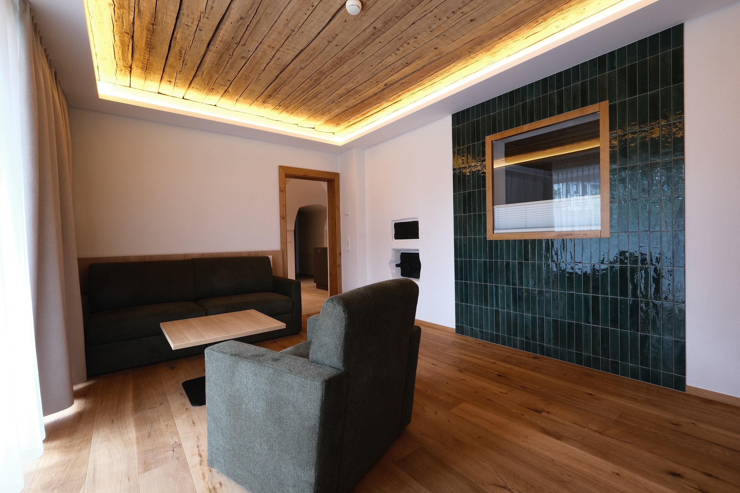 Haus Ritschart, Wohnung Tradition Tradition trifft auf Moderne – unsere neue Wohnung mit Sauna, großer Terrasse, 2 Schlafzimmern, Wohnzimmer und Esszimmer mit Kücheninsel Dieses 95 m² große Apartment bietet viel Platz für Familien oder Gruppen und verbindet modernes Design mit liebevoll bewahrten traditionellen Elementen. Zwei Fernseher sorgen dafür, dass Lieblingsfilme und Sportveranstaltungen gleichzeitig genossen werden können. Auf den Ausziehcouchen finden jeweils 2 Kinder bequem Platz.