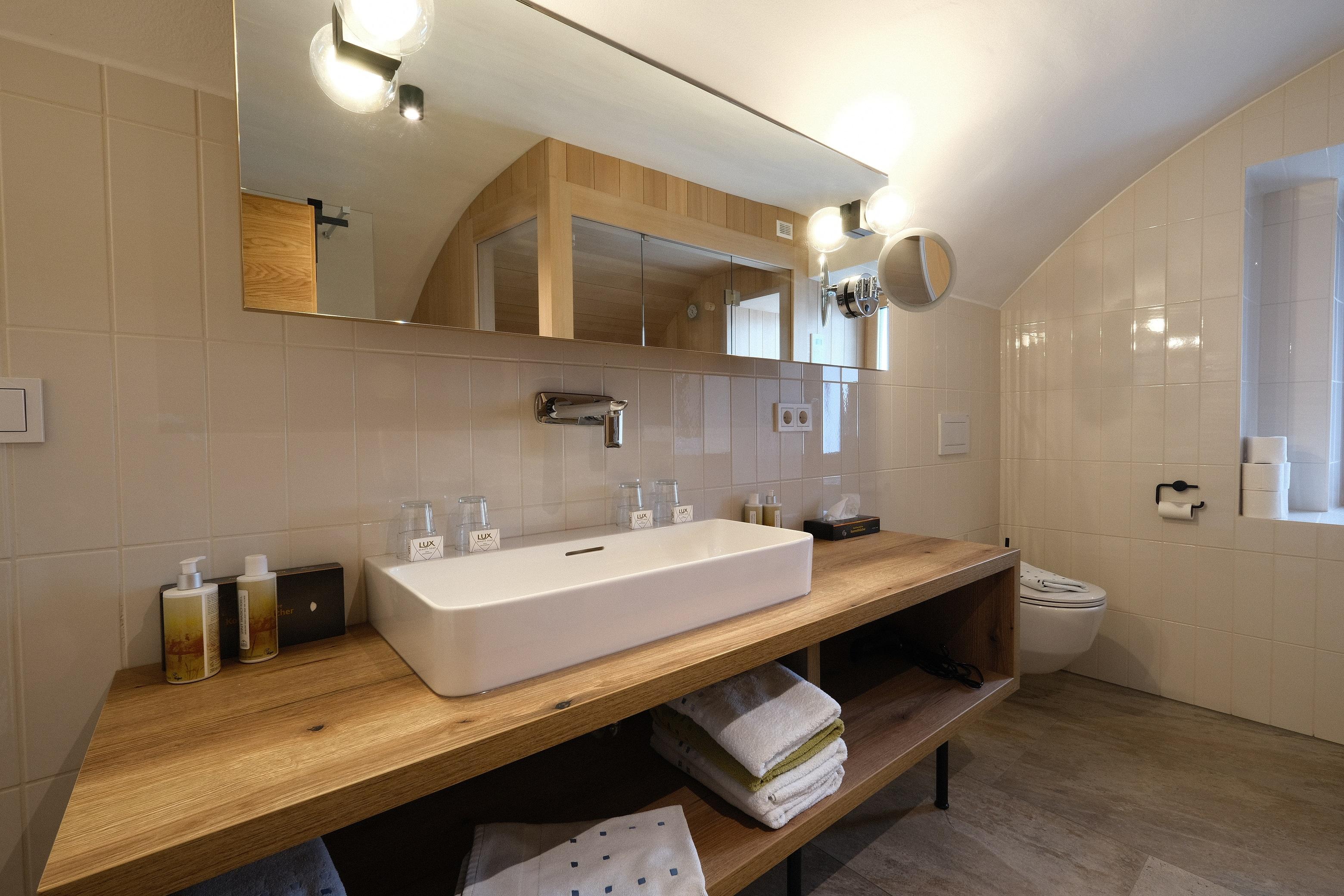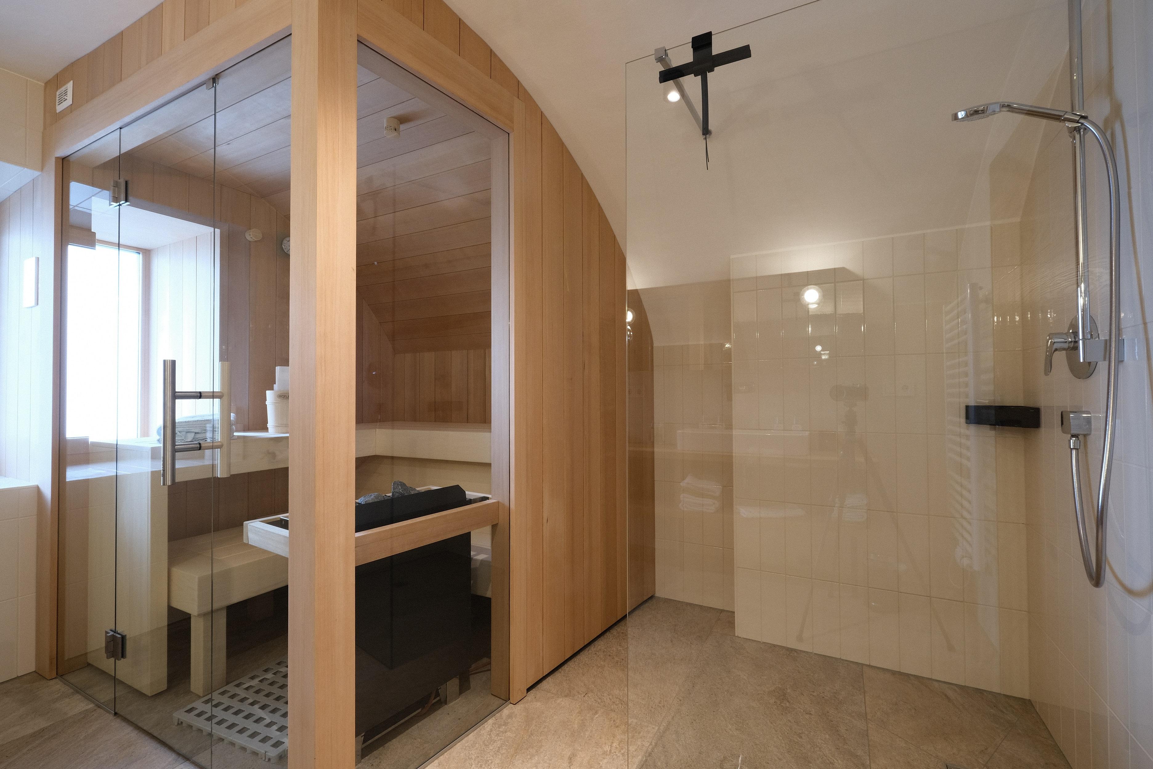 • Großes Badezimmer mit Dusche und eigener Sauna