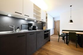 Das Apartment verfügt über ein Schlafzimmer mit neuen Boxspringbetten, ein großes Wohn-Esszimmer mit kleiner Küchenzeile und ein modernes Badezimmer mit Dusche, Badewanne, WC, Kosmetikspiegel und Fenster. Zwei Flat-TVs sorgen dafür, dass sich Lieblingsfilme und Sportveranstaltungen problemlos koordinieren lassen. Kinder schlafen bequem auf der Ausziehcouch im Wohnzimmer.
