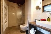 • Modernes Badezimmer mit Dusche, WC und Waschbecken mit Kosmetikspiegel