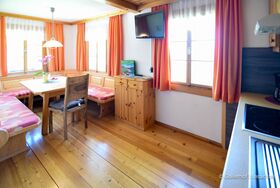 Diese Ferienwohnung besteht aus einer großen gemütlichen Wohnküche mit großer Essecke, ein Elternschlafzimmer, ein Kinderzimmer mit Stockbett, und Du/WC. Diese Ferienwohnung hat keinen Balkon! Aber ist trotzdem mit vielen Fenstern sehr hell und freundlich.