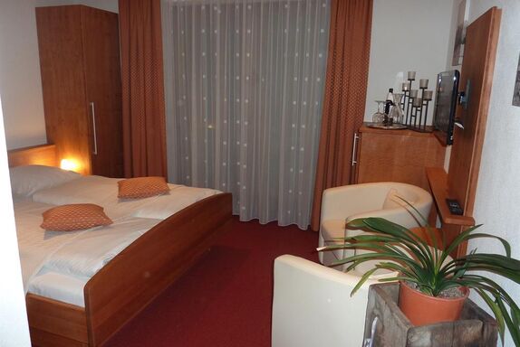 Komfortables Zimmer aus massivem, gewachsten Erlenholz, Dusche/WC, mit SAT-TV, w-lan und großem südseitigem Balkon, Kühlschrank. Von den Sonnenstrahlen geweckt, erwartet Sie ein reichhaltiges Frühstücksbuffet - in unserem neuen, liebevoll gestalteten Frühstücksraum mit direktem Zugang zum Garten -zur Stärkung vor einer Wanderung oder einer der vielfältig möglichen Urlaubsaktivitäten.