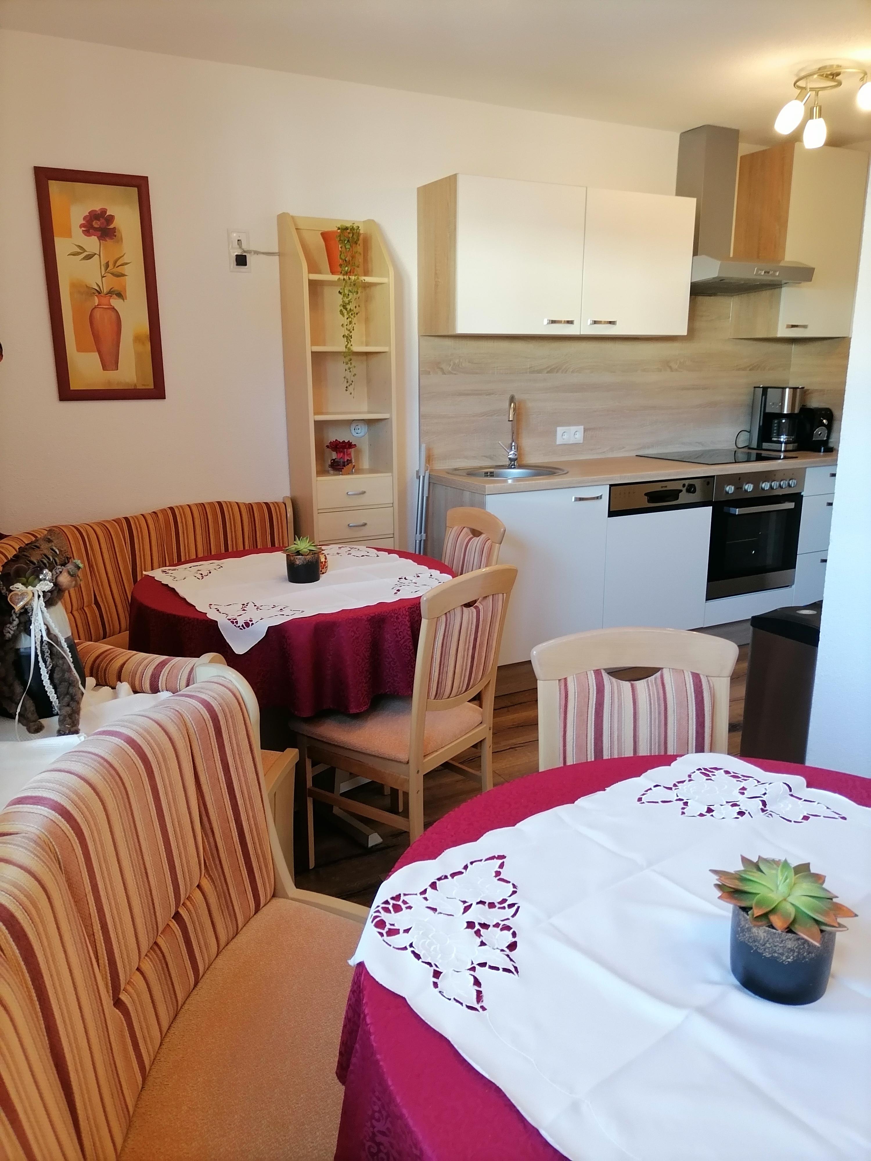 Unser Appartement für 6-8 Personen mit ca. 100 m² besteht aus 3 Doppelzimmern (2 davon mit Zusatzbetten möglich). Jedes Schlafzimmer verfügt über ein Badezimmer mit Dusche/WC sowie Balkon, Safe, Flat-TV und WLAN. Große, vollausgestattete Wohnküche (Geschirrspüler, Backrohr, Herd, Kühlschrank, Gefrierfach, Wasserkocher, Kaffeemaschine uvm.) mit Essbereich.