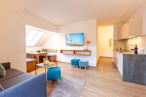 Diese gemütlichen Wohnungen bieten viel Platz und Komfort für 4 bis 5 Personen. Zwei Schlafzimmer und ein gemütlicher Wohnraum, ausgestattet mit einer bequeme Schlafcouch sorgen für flexible Schlafmöglichkeiten und erholsame Nächte.
