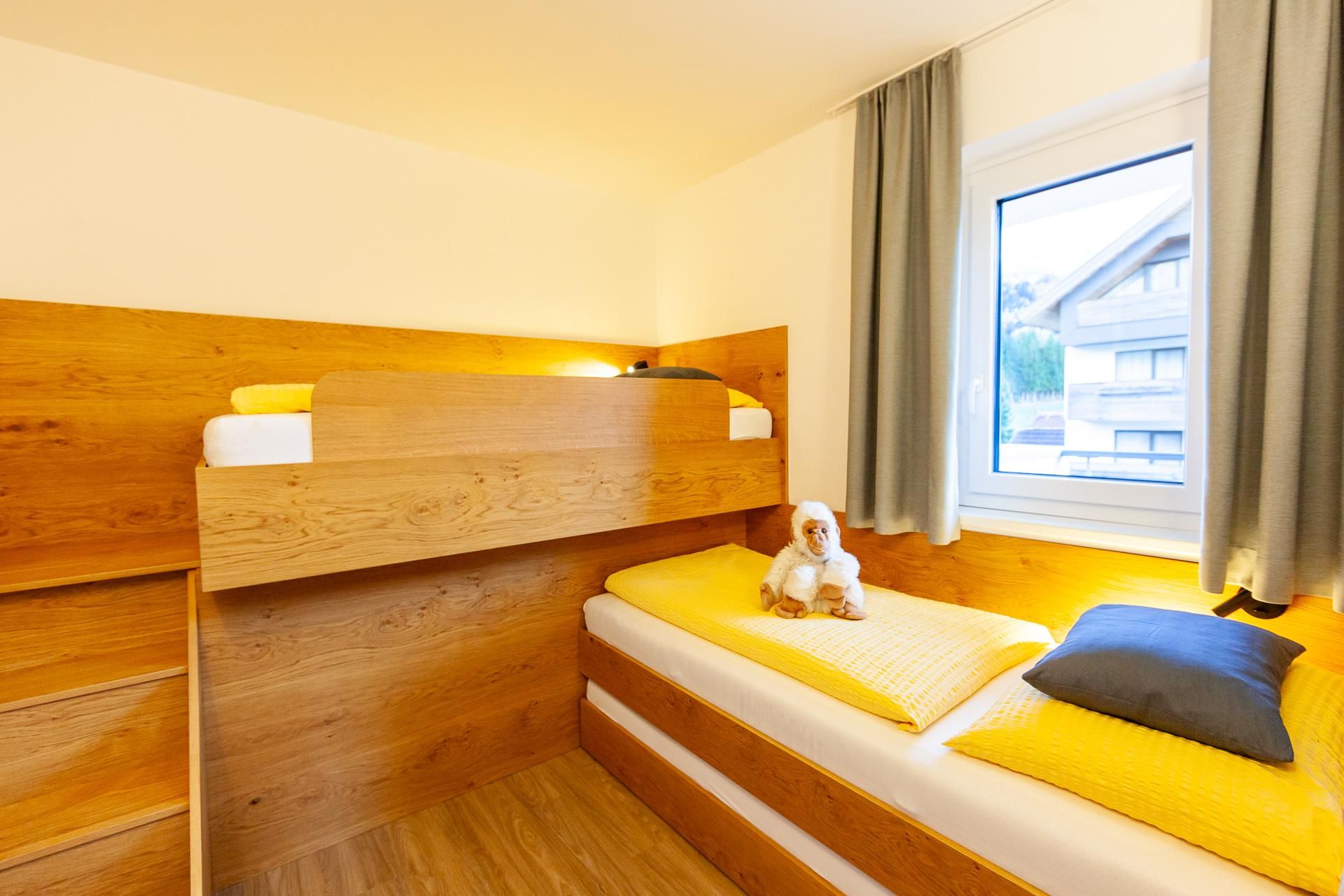 Der Grundriss der Wohnungen unterscheidet sich ein wenig. In Seehaus 7 befinden sich in beiden Schlafzimmern je ein Doppelbett, in Seehaus 12 in einem ein Doppelbett, im anderen drei höhenversetzte Einzelbetten. Die Wohnung Seehaus 7 bietet einen schönen Blick auf den See und der Balkon in Seehaus 12 verspricht erholsame Sonnenstunden am Südbalkon.