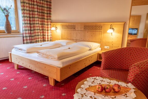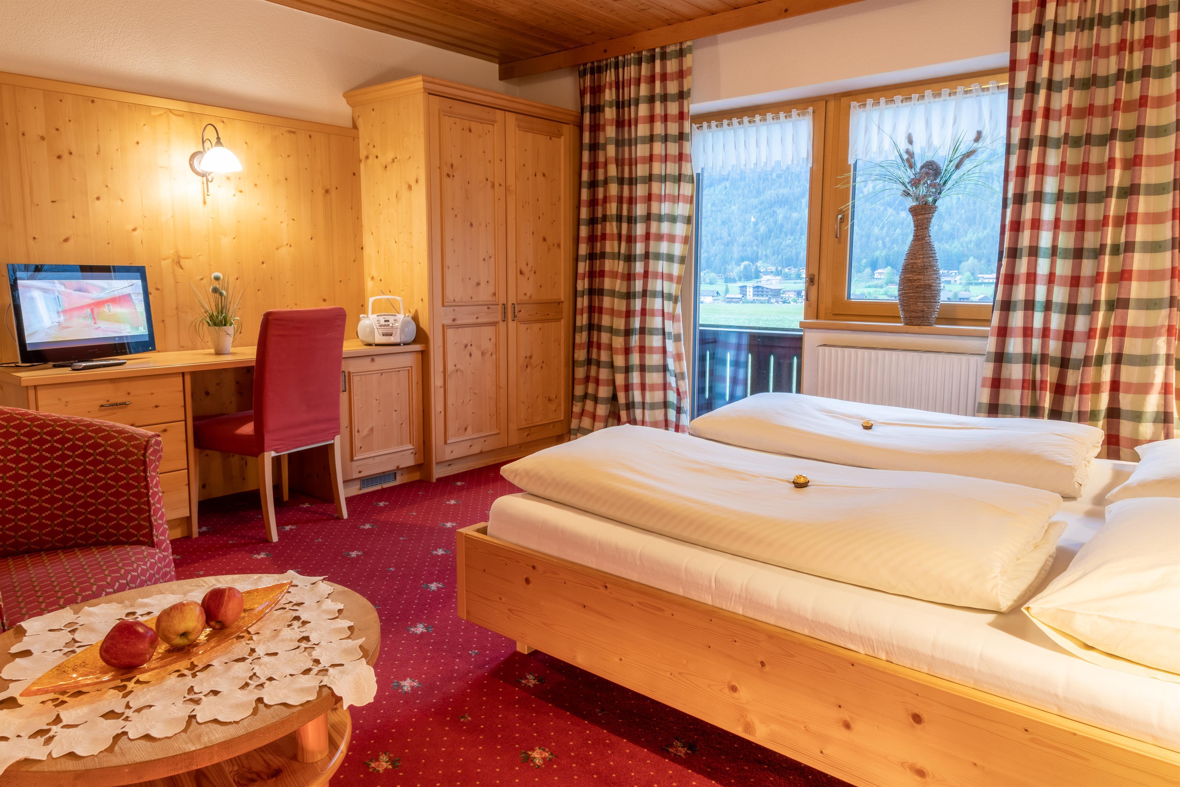 Gemütliches Doppelzimmer für 2 Personen (25m²) mit Bergblick, Flachbild-TV, Radio, Dusche und WC, kleinem Kühlschrank, kostenfreien W-LAN sowie einem eigenen Balkon.