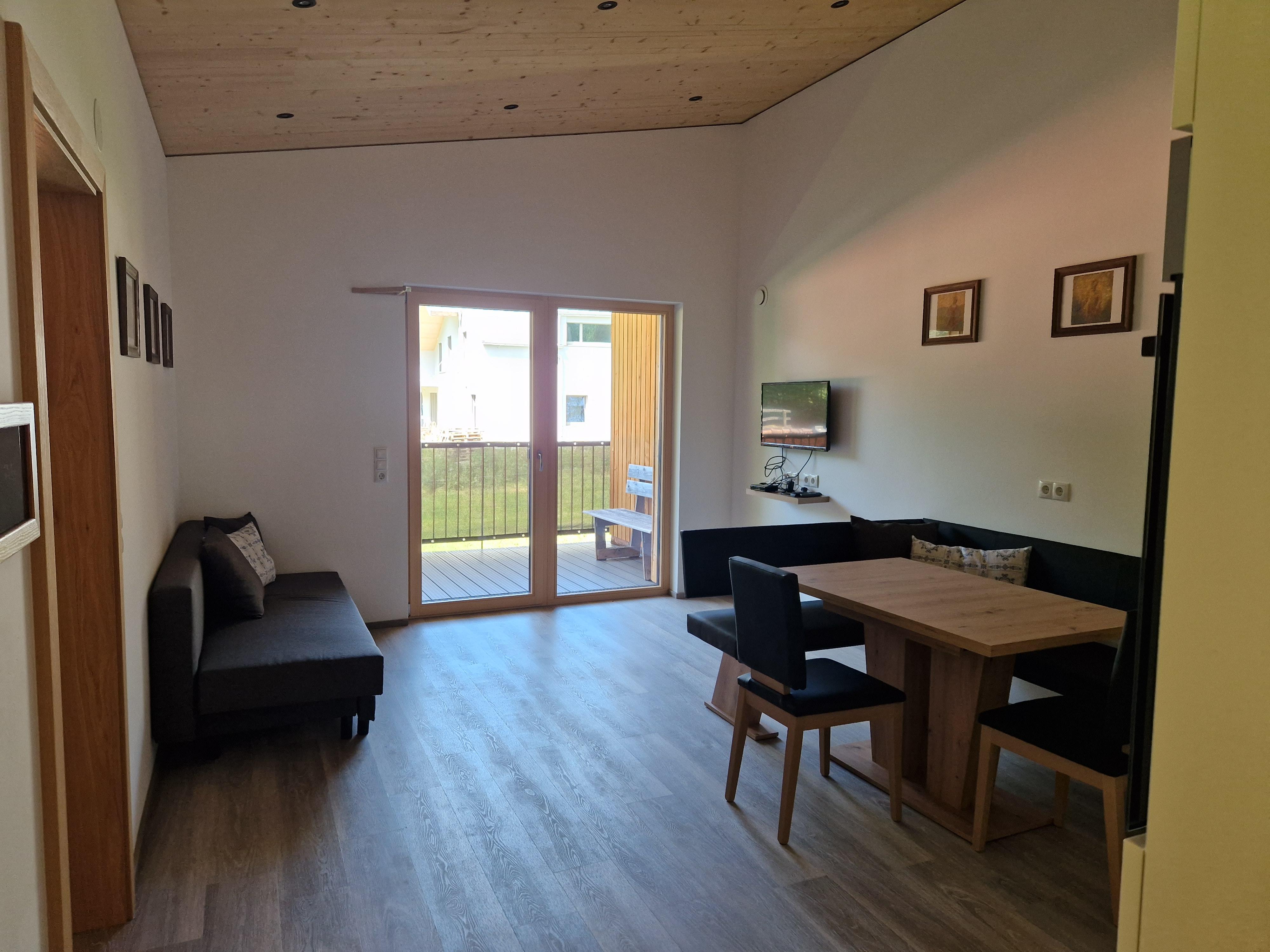 Die Wohnungen „Gamsberg“ und „Rehwiese“ zu jeweils 57 m² verfügen beide über eine voll eingerichtete Wohnküche, eine Eckbank und eine Couch, WLan, TV, Bad inkl. WC, eine Terrasse mit 18 m² und 2 Schlafzimmer.