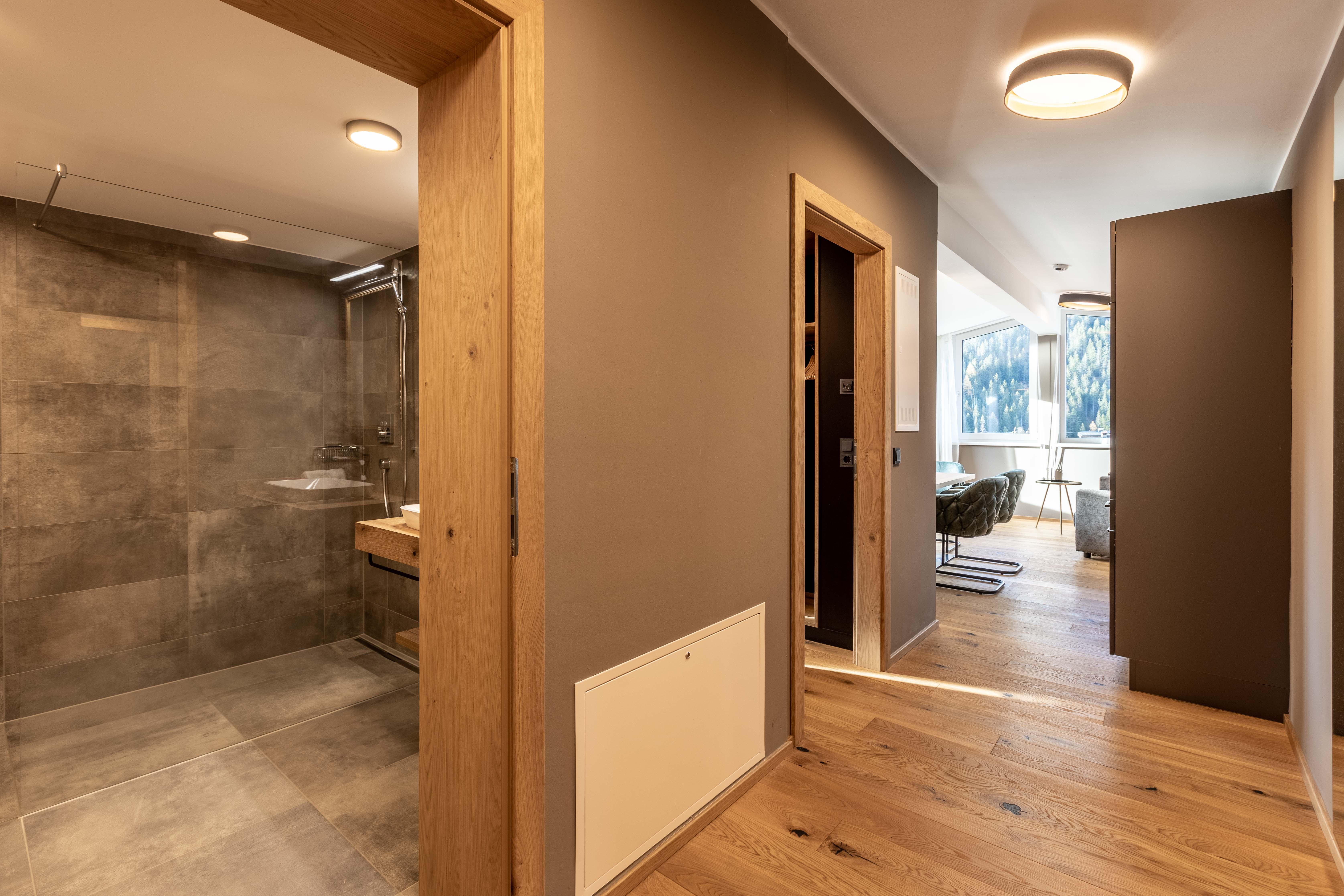 Das Penthouse bietet Platz für 12 Personen und besteht aus zwei Wohnküchen, vier Schlafzimmern, vier Badezimmern, zwei Terrassen und zwei Balkons. Der Eingangsbereich, mit Garderobe, führt direkt in die Wohnküche, welche mit Küchengeräten, Kühl-Gefrierkombi sowie Nespresso Kaffeemaschine ausgestattet ist. Die Küche verfügt außerdem über Küchen-geschirr inklusive Töpfe und Pfannen. Ein Esstisch bietet Platz, um ein gemeinsames Essen zu genießen, welches liebevoll in der Küche zubereitet wurde. Im hellen Wohnbereich befindet sich ein Fernseher, ein Kleiderschrank und ein Ausziehsofa, welches für süße Träume für zwei Personen sorgt. Von hier gelangt man auch auf den Balkon, welcher zu gemütlichen Stunden bei einem Glas Wein und guter Gesellschaft einlädt. Vom Wohnbereich aus hat man Zugang zu einem der beiden Badezimmer mit Dusche und WC, welches an eines der zwei Schlafzimmer angrenzt. Alle Schlafzimmer verfügen über ein Boxspring Doppelbett, Kleiderschrank, Fernseher und Safe. Die Hauptschlafzimmer verfügen über ein eigenes Badezimmer mit Dusche und WC. Das zweite Schlafzimmer verfügt über die gleiche Zimmerausstattung, grenzt an das Bad und WC im Wohnbereich an und hat auch einen eigenen Balkon.