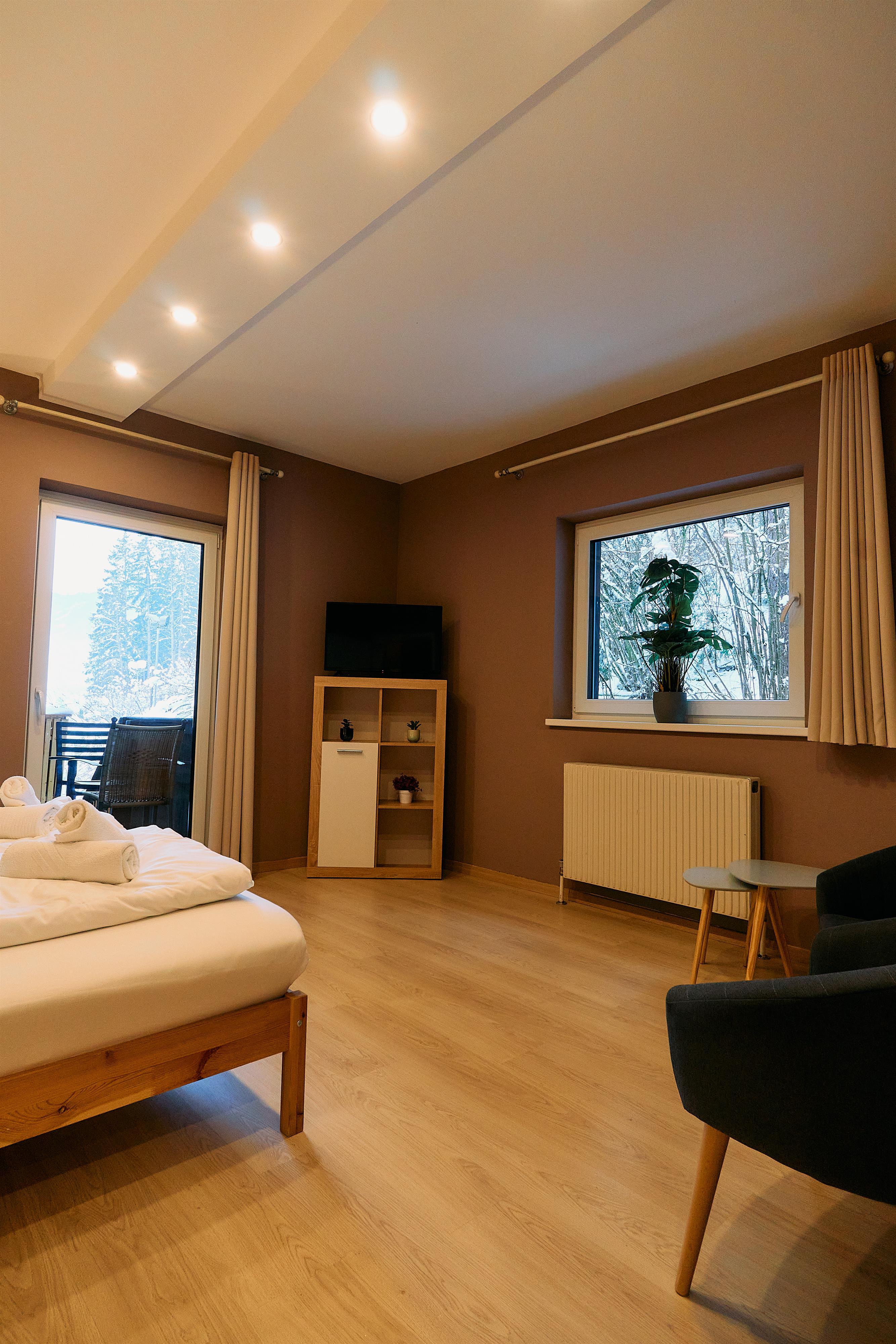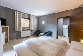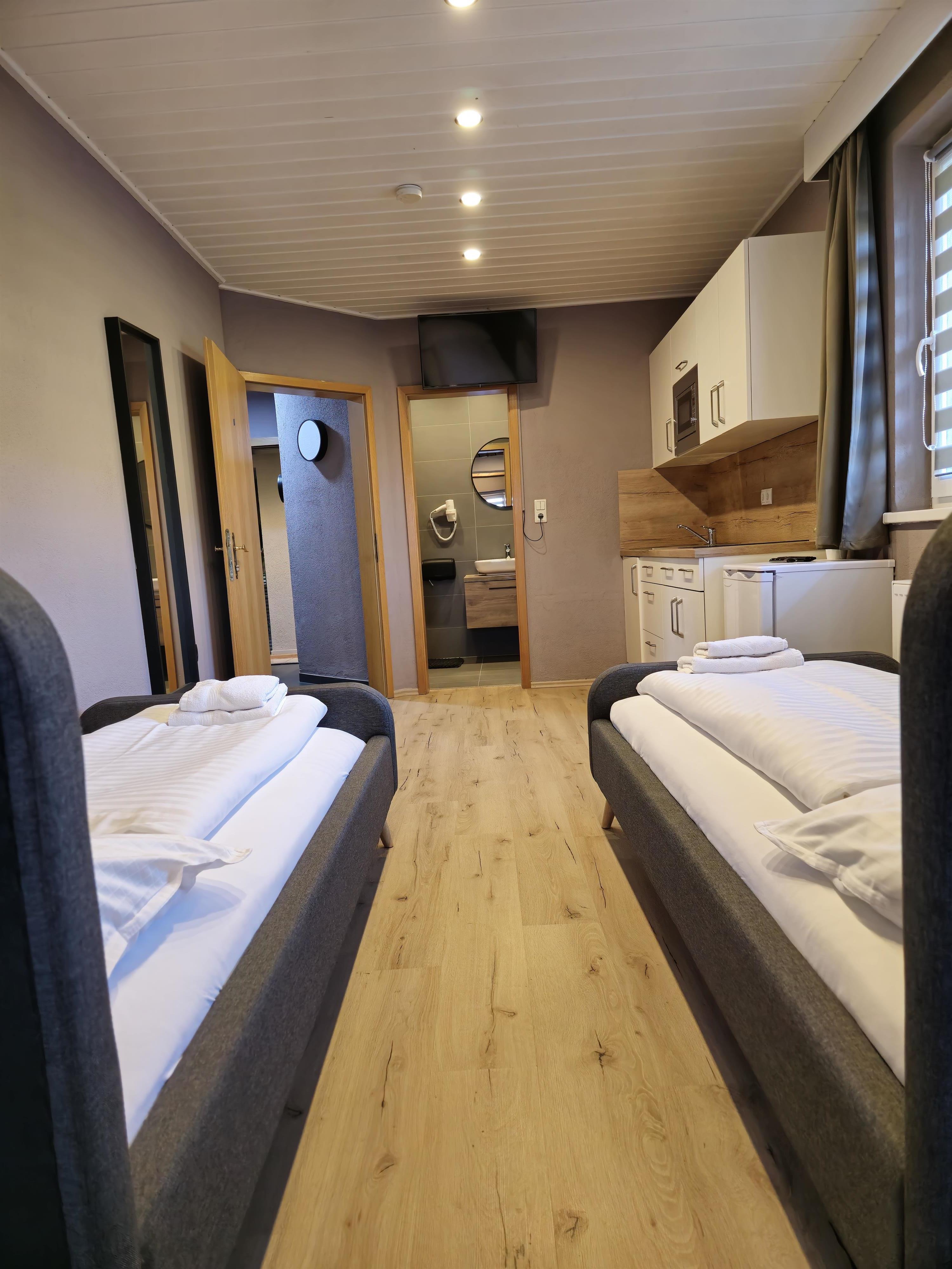 Dich erwartet ein Studio (2 Einzelbetten) mit Badezimmer, Sitzecke und Fernseher. Diese Einheit hat keine eigene Küche. Sehr gerne begrüßen wir euch zum Abendessen im Restaurant Fratelli!