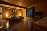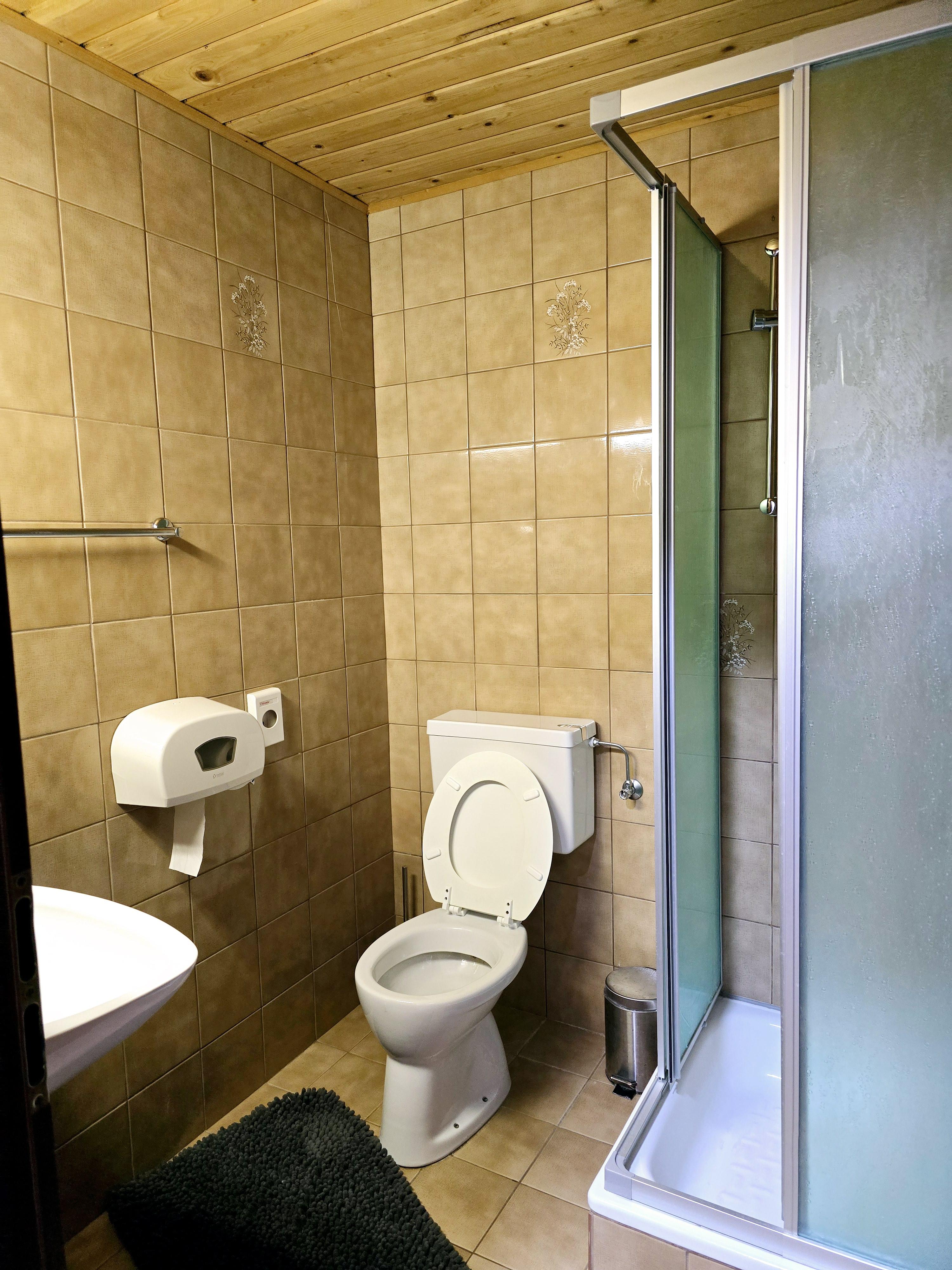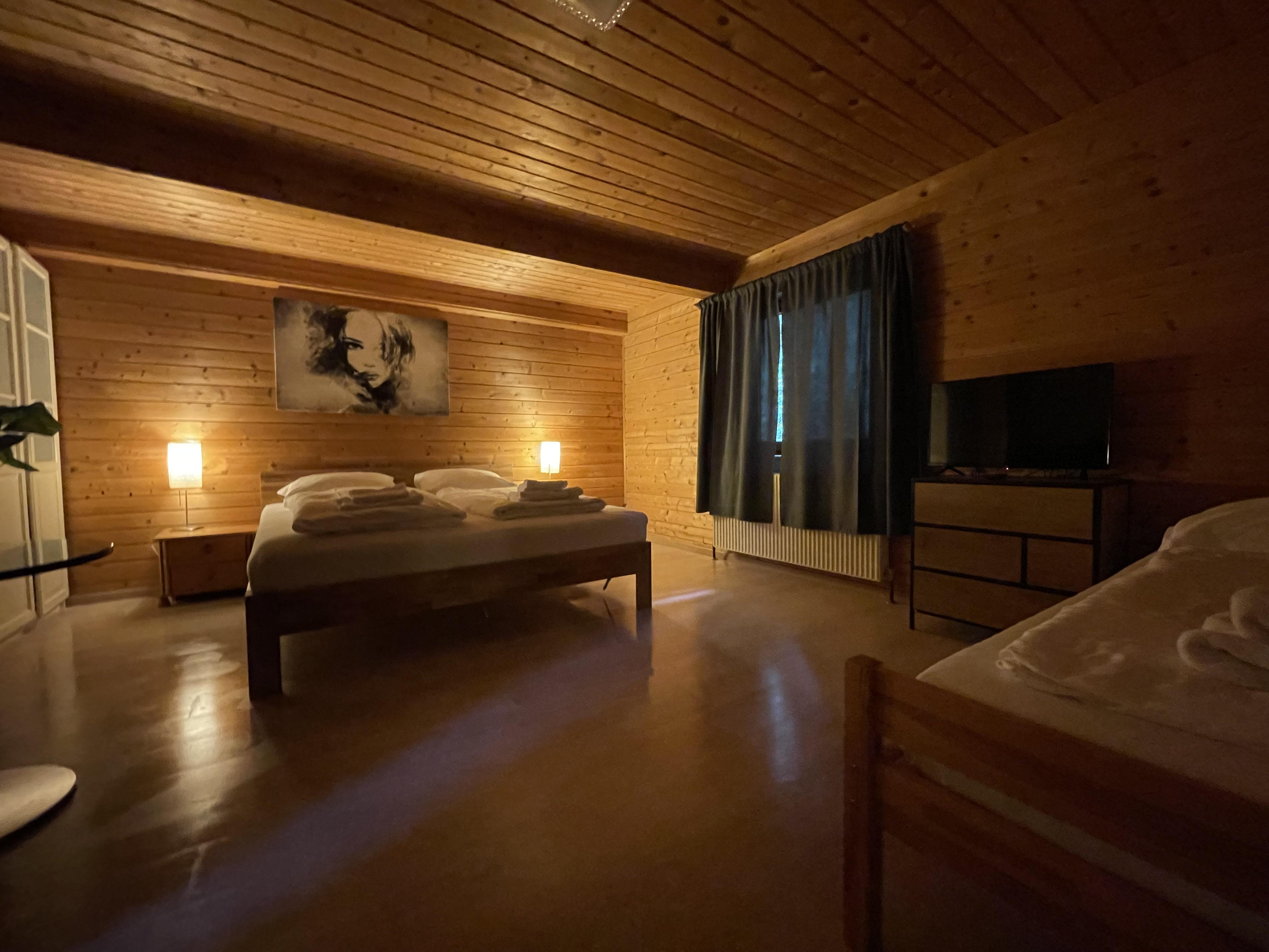 Dich erwartet ein 3-Bett-Zimmer, mit einem Doppelbett und Einzelbett. Außerdem gibt es ein Badezimmer. (Dusche, WC, Einzelwaschbecken)